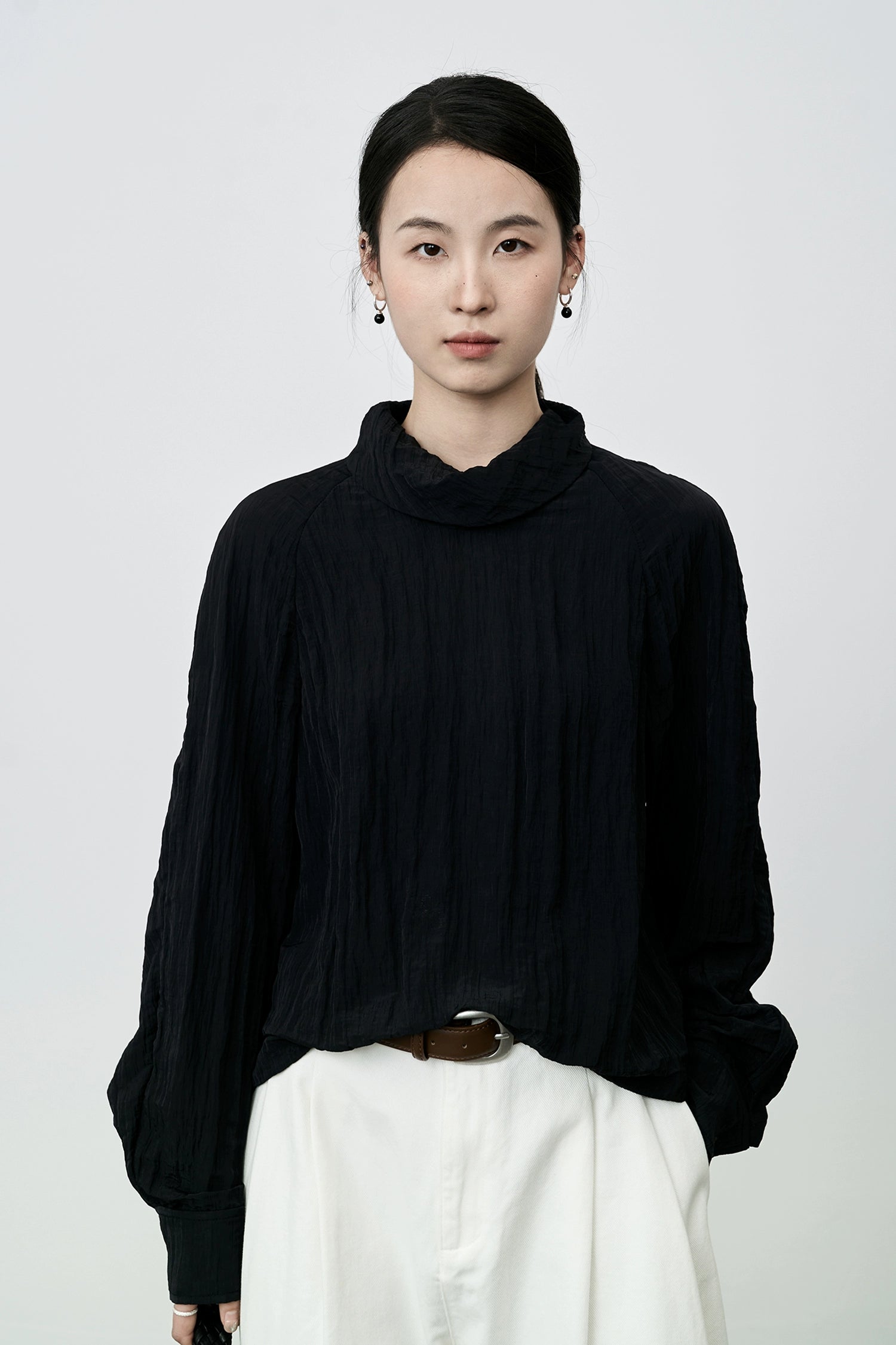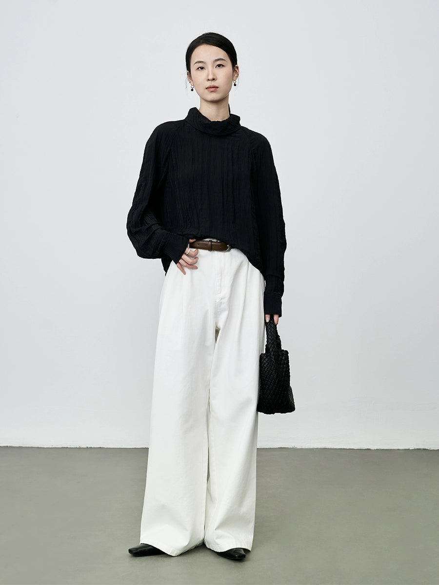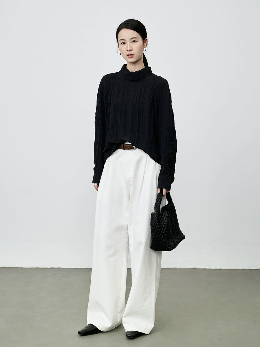 Camisa de manga larga con cuello apilado y textura antiarrugas para mujer de CAREMIND