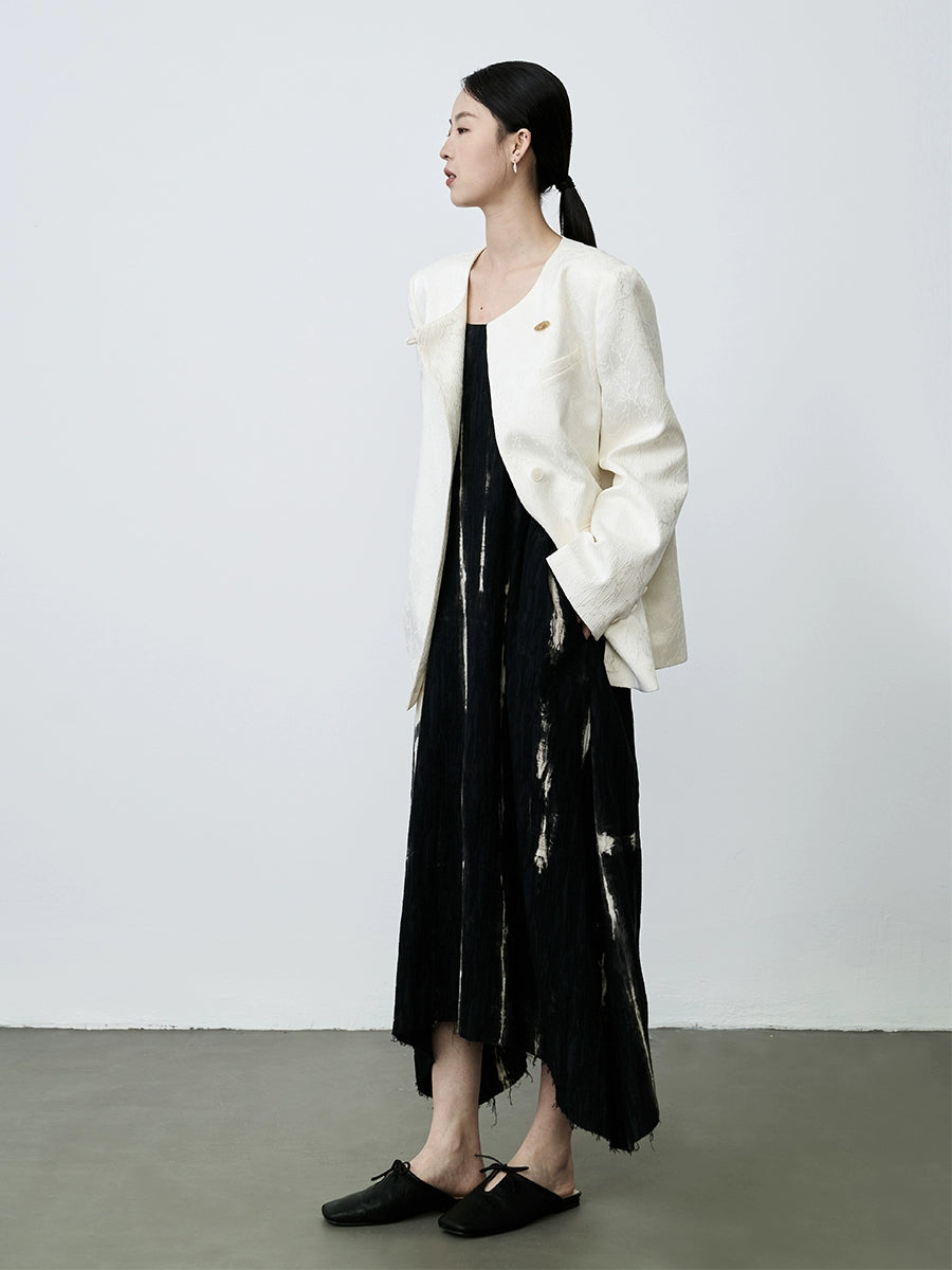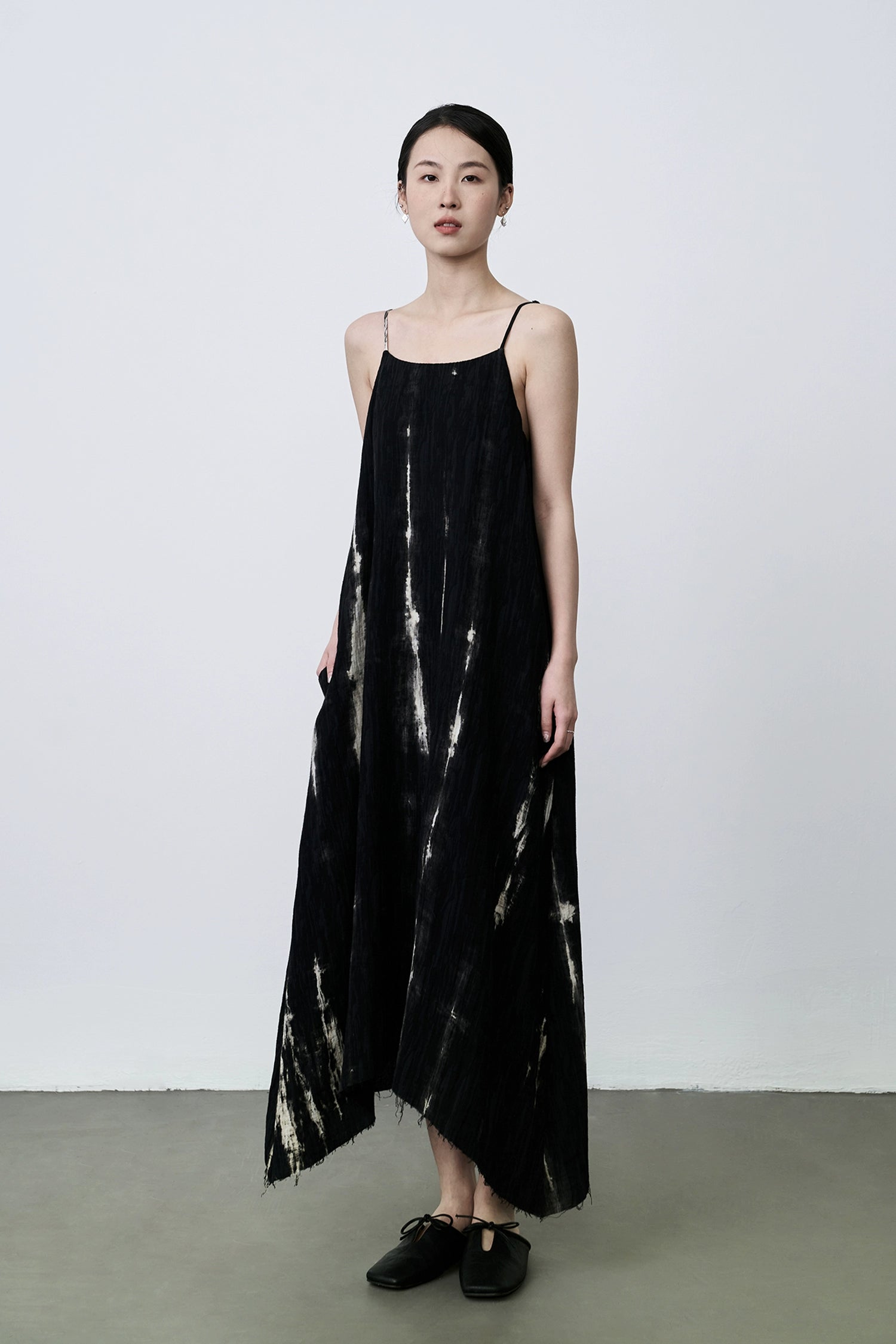Vestido con tirantes de mezcla de lino y algodón de primera calidad en color negro de CAREMIND, vestido largo con falda tipo paraguas con péndulo grande irregular