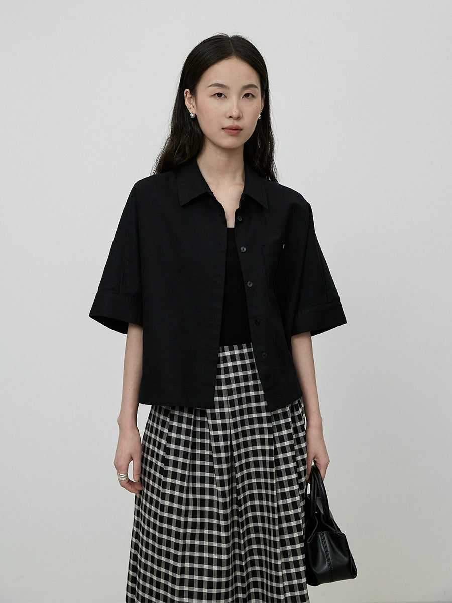 Camisa corta con cuello polo de manga corta negra CAREMIND para hombre pequeño con abrigo corto con bolsillos grandes