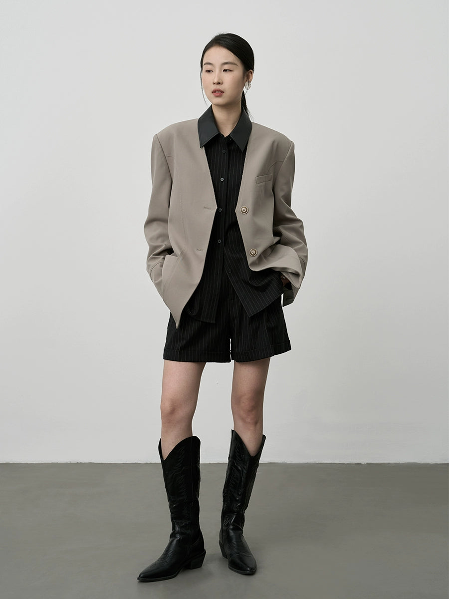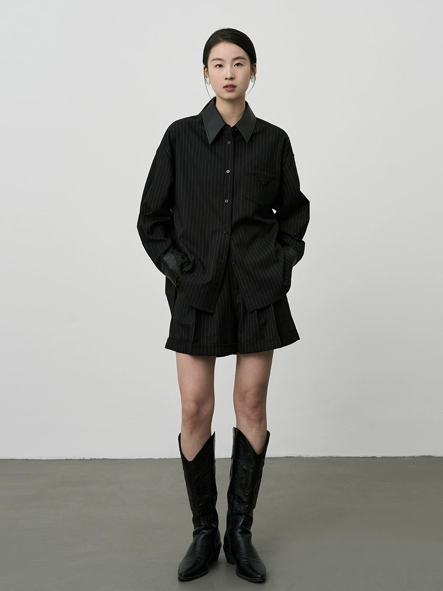 Pantalones de traje a rayas negras de CAREMIND, pantalones cortos ajustados de cintura alta informales para mujer