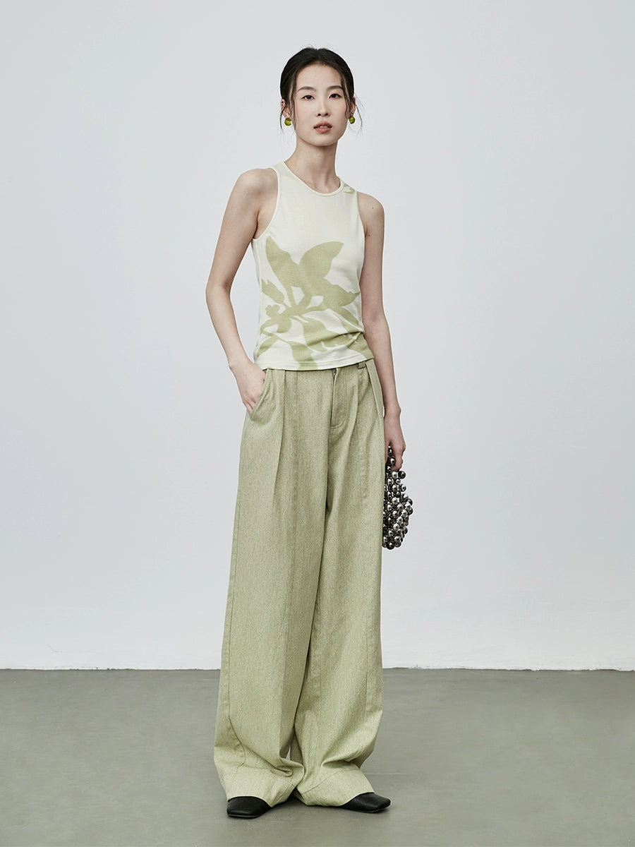 Pantalones casuales de algodón rectos de cintura media alta y verde chic de CAREMIND, pantalones holgados retro de pierna ancha para mujer