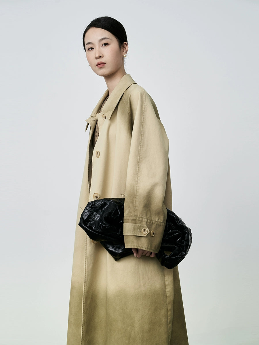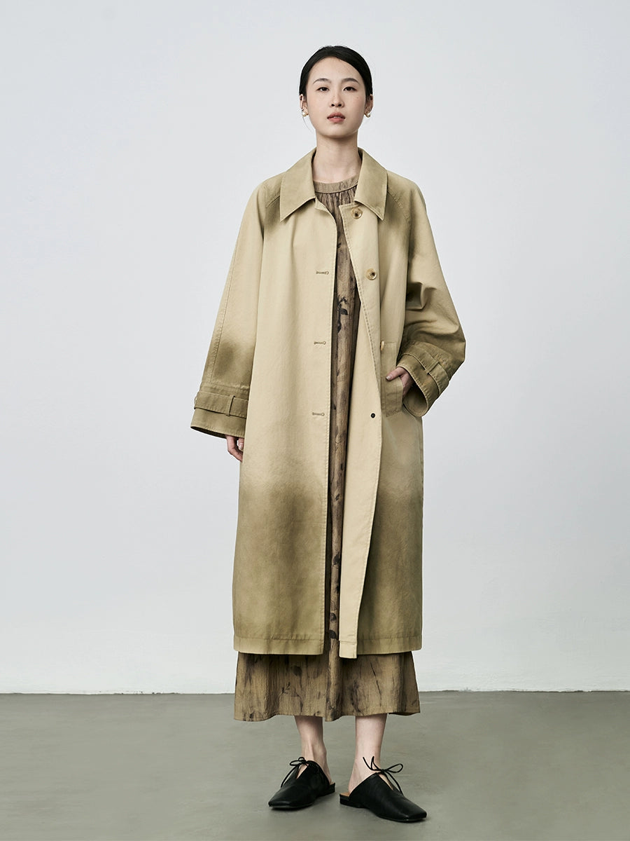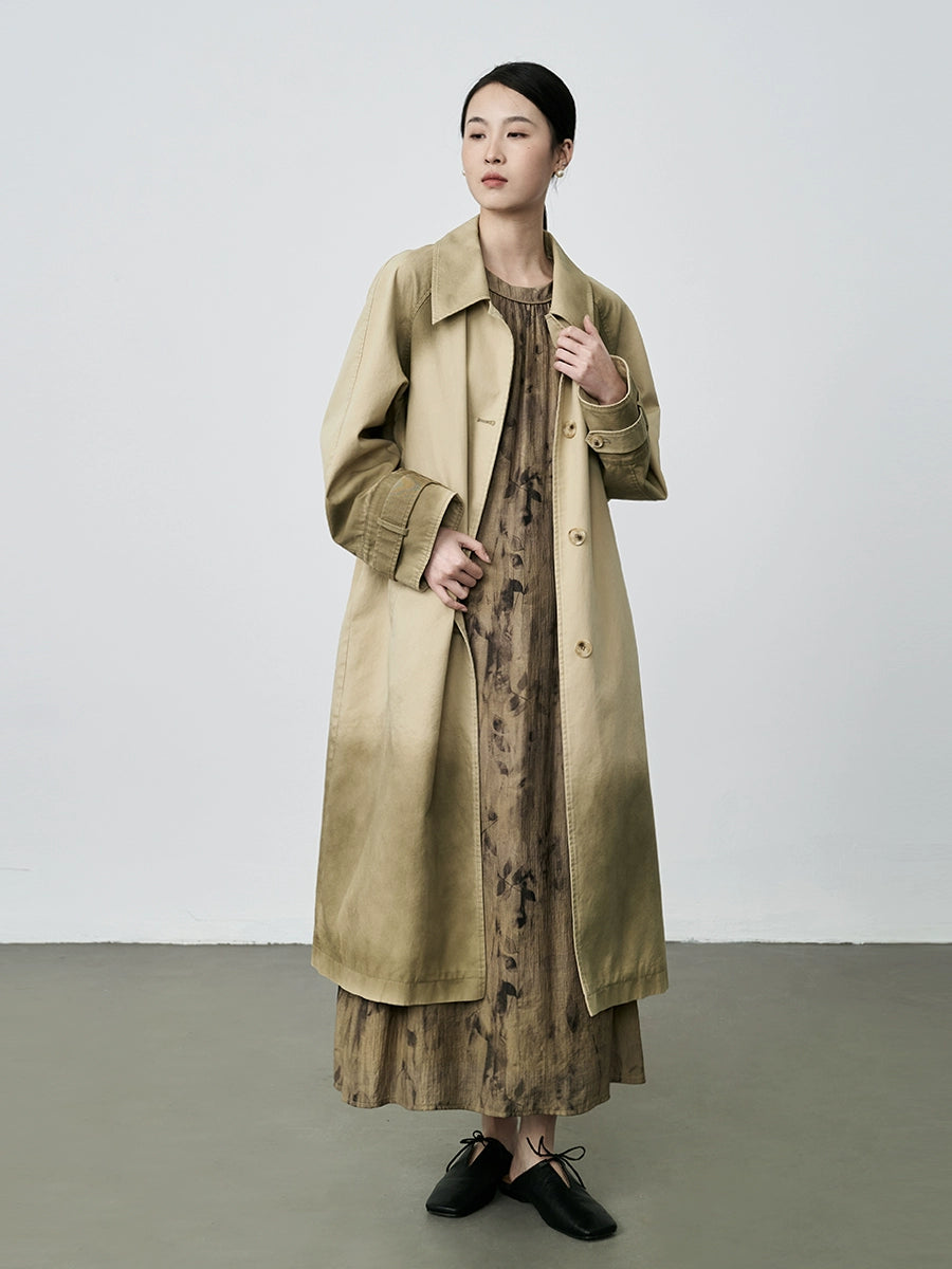 CAREMIND Gabardina de silueta clásica para mujer color frito artesanía de alta gama ambiente abrigo mediano y largo