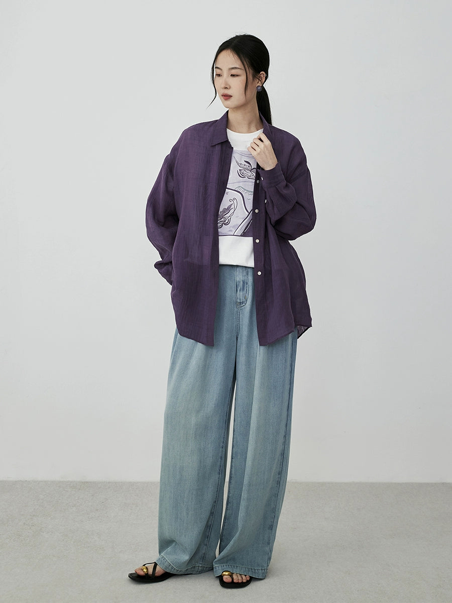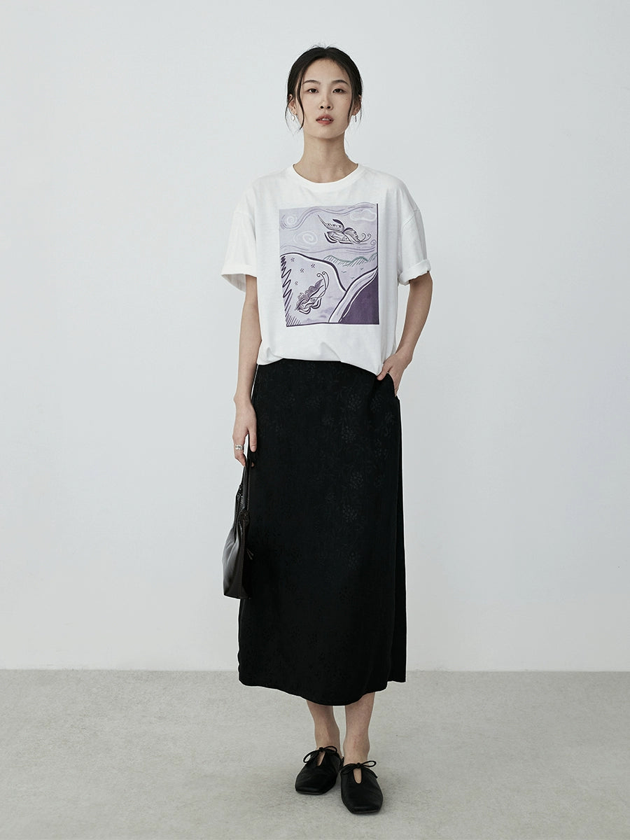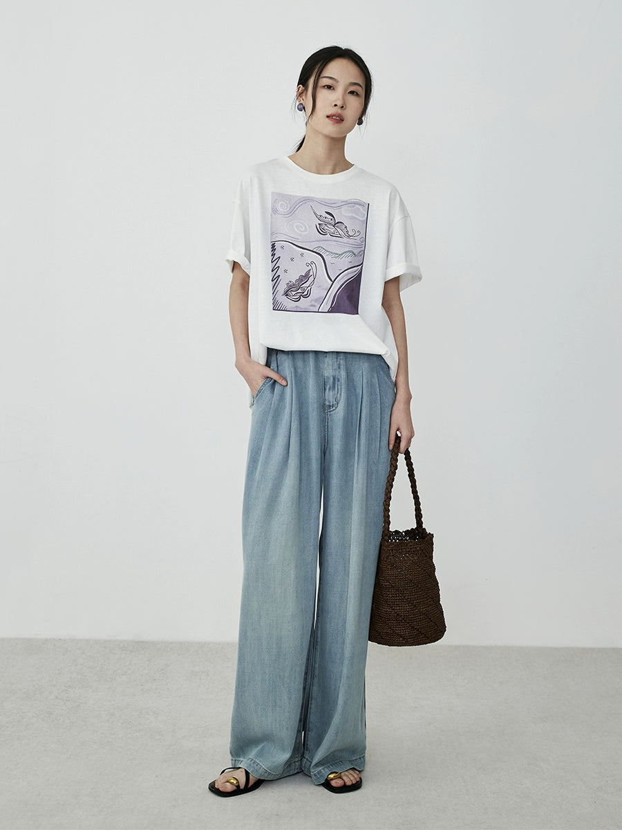 Camiseta holgada con estampado de mariposas de algodón CAREMIND 2024 verano cuello redondo hombro delantero manga corta fina