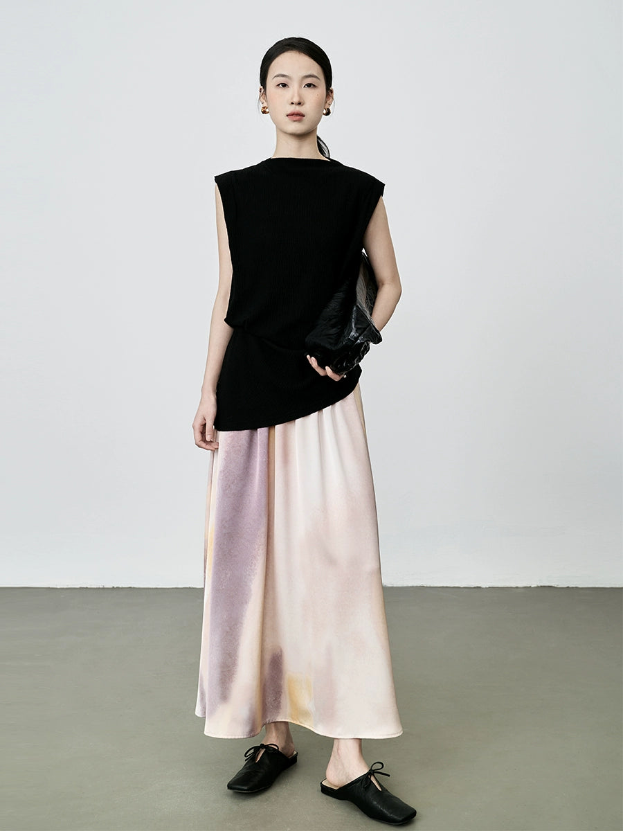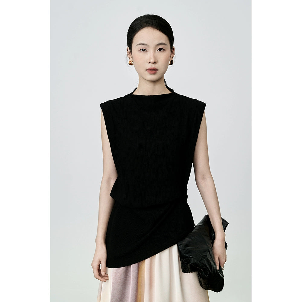 Camiseta ajustada sin mangas negra con diseño de bisel irregular y chaleco de moda CAREMIND para mujer