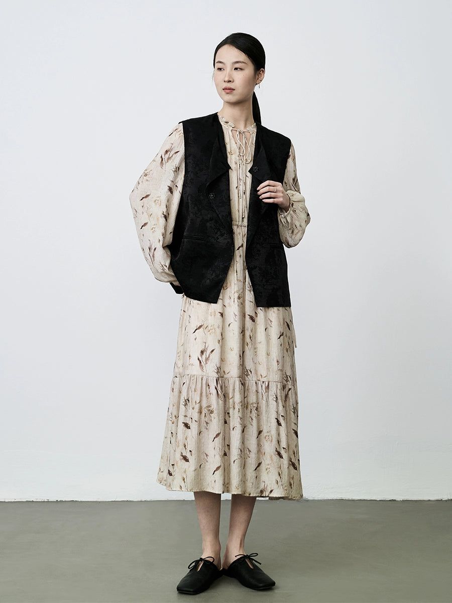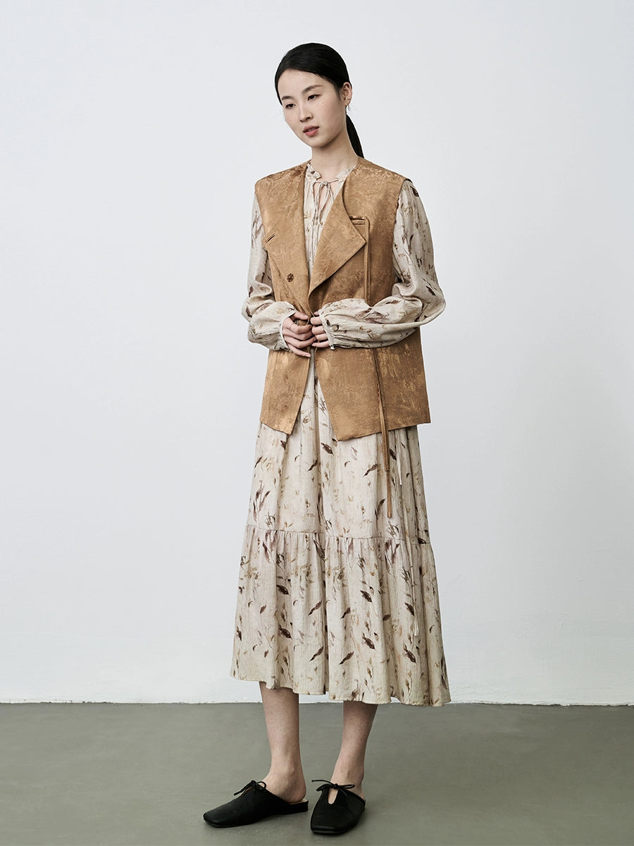 CAREMIND Vestido floral francés para mujer, largo, amarillo albaricoque, temperamento de alta gama, vestido de estilo ligero y maduro