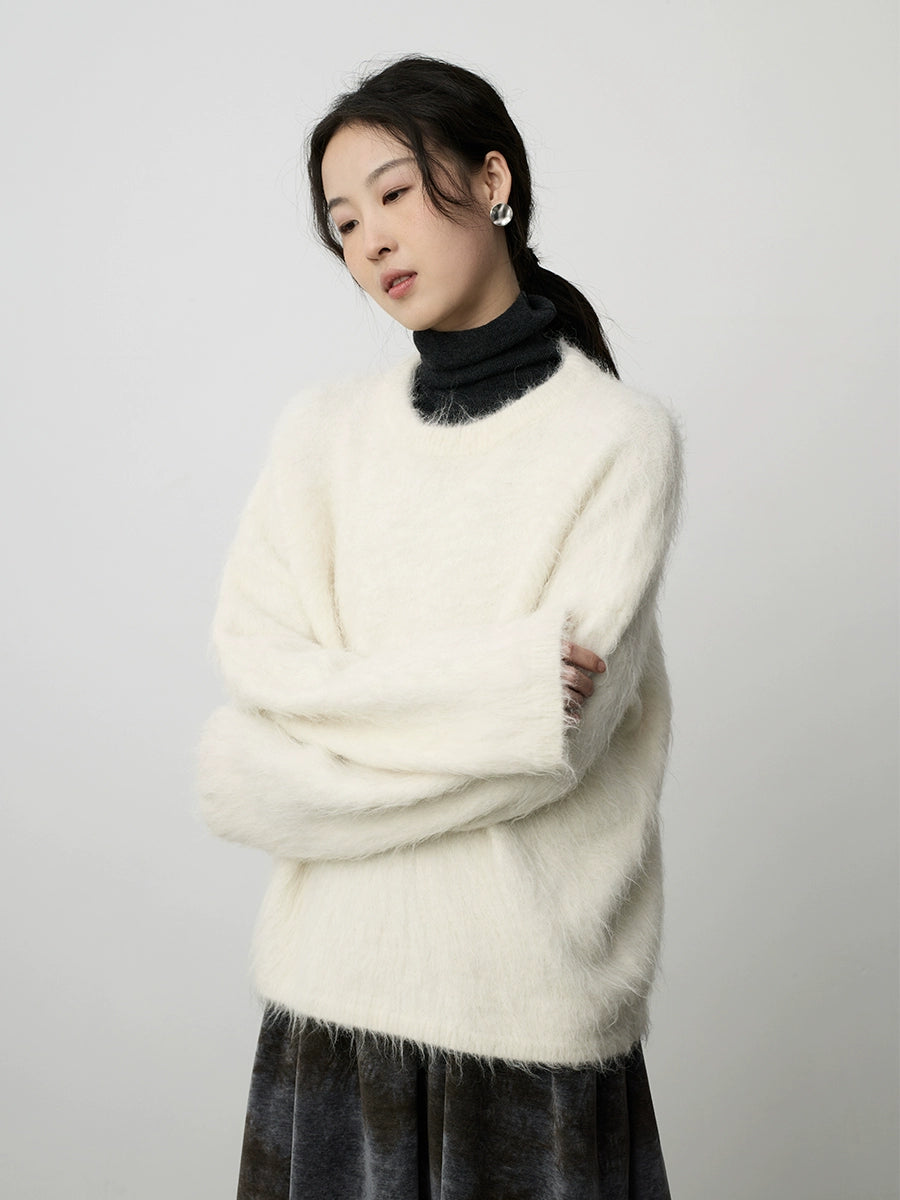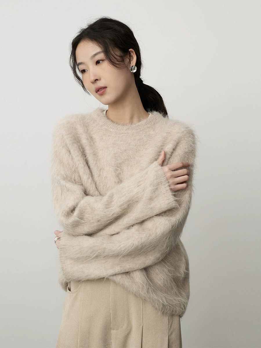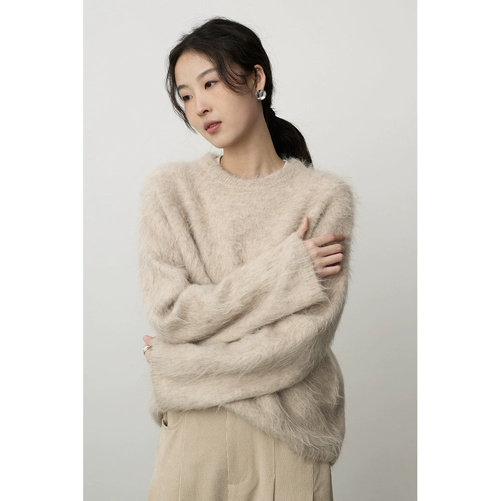 Jersey suave premium nuevo CAREMIND de pelo largo de alpaca gris para mujer 2024