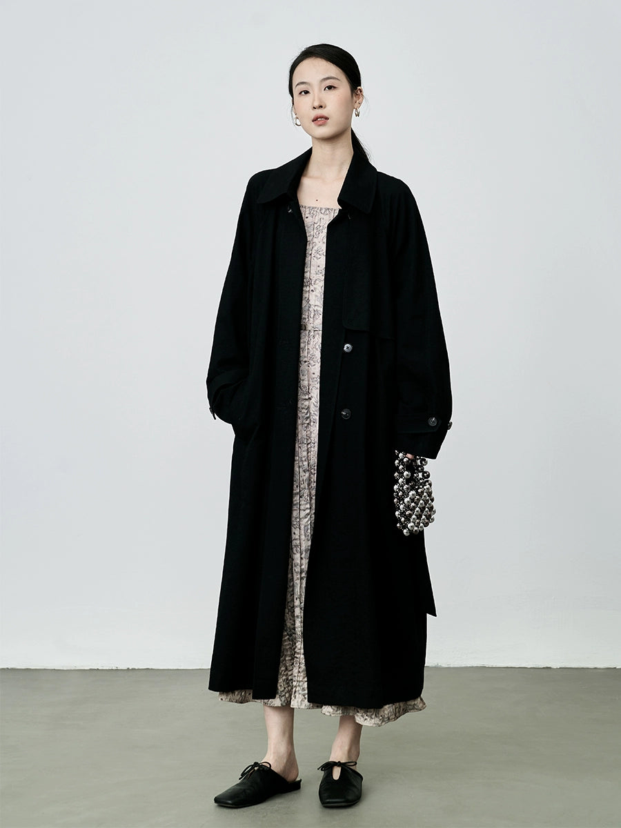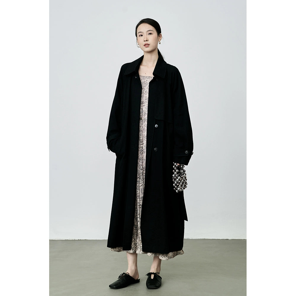 CAREMIND Gabardina blanca ligera y texturizada para mujer, abrigo largo informal de temperamento francés para otoño