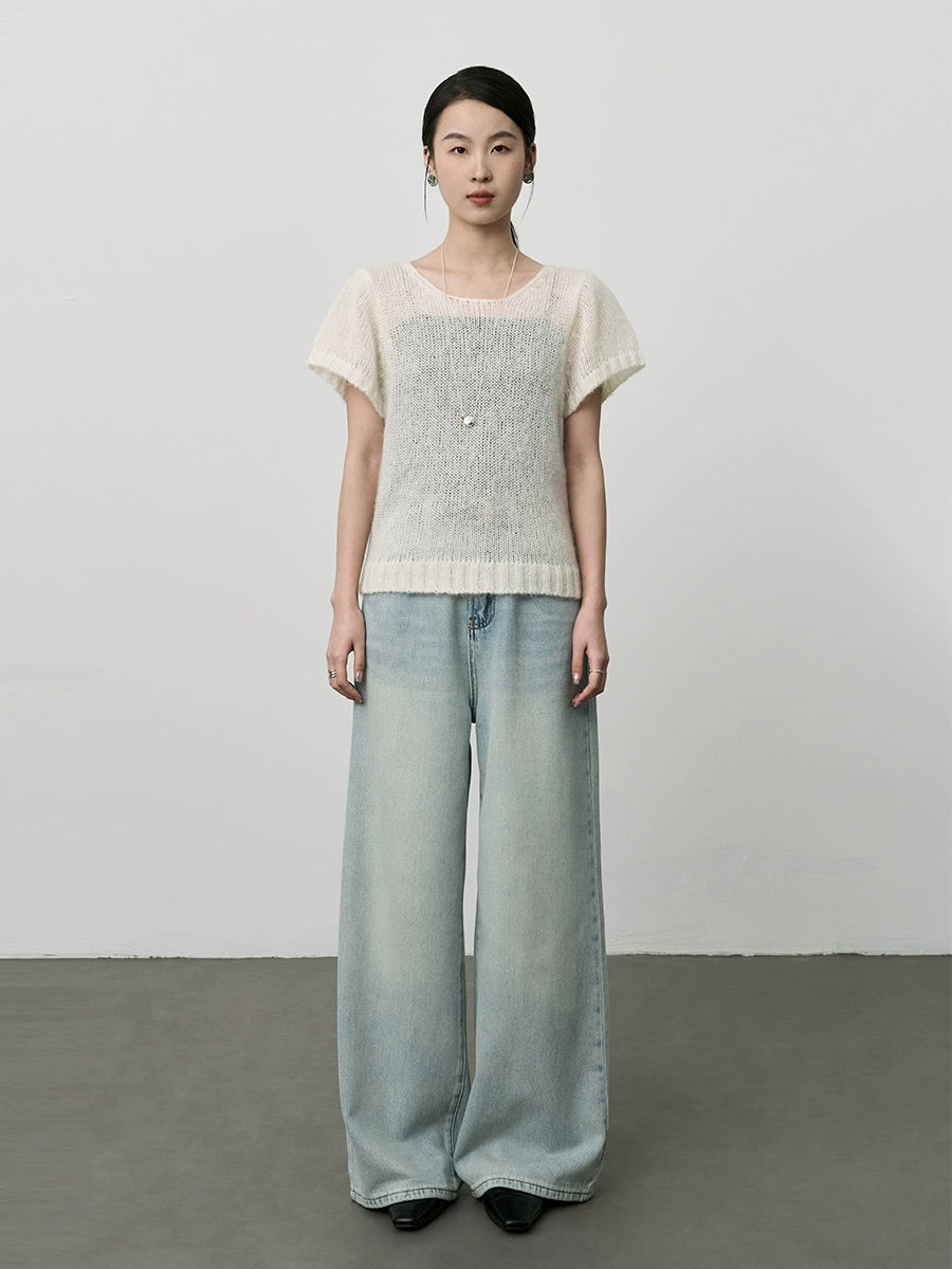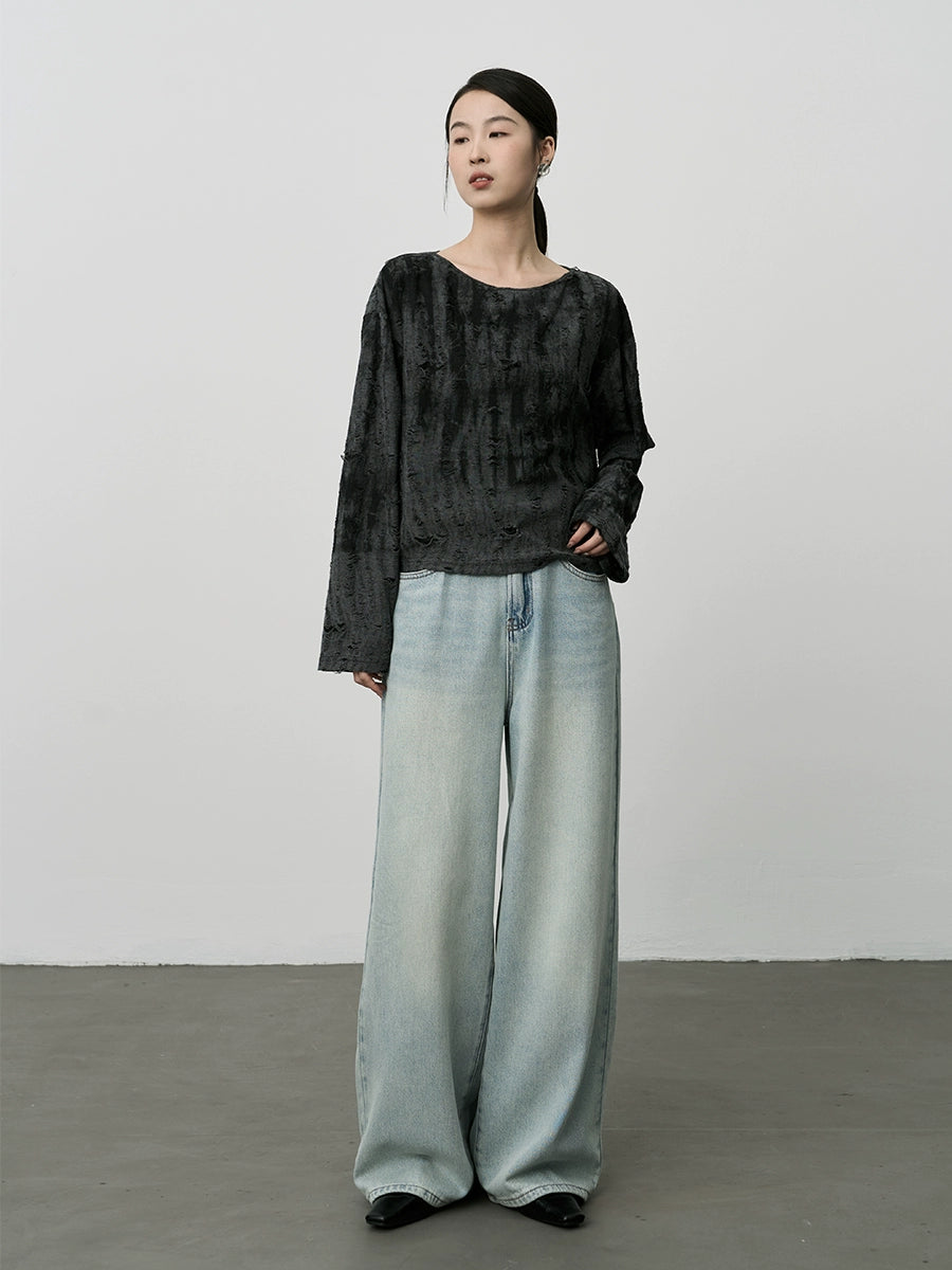 Pantalones vaqueros de pierna ancha de color azul claro CAREMIND, pantalones ajustados de cintura alta y pierna recta, pantalones de verano que fregan el suelo