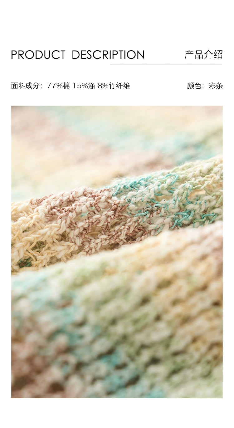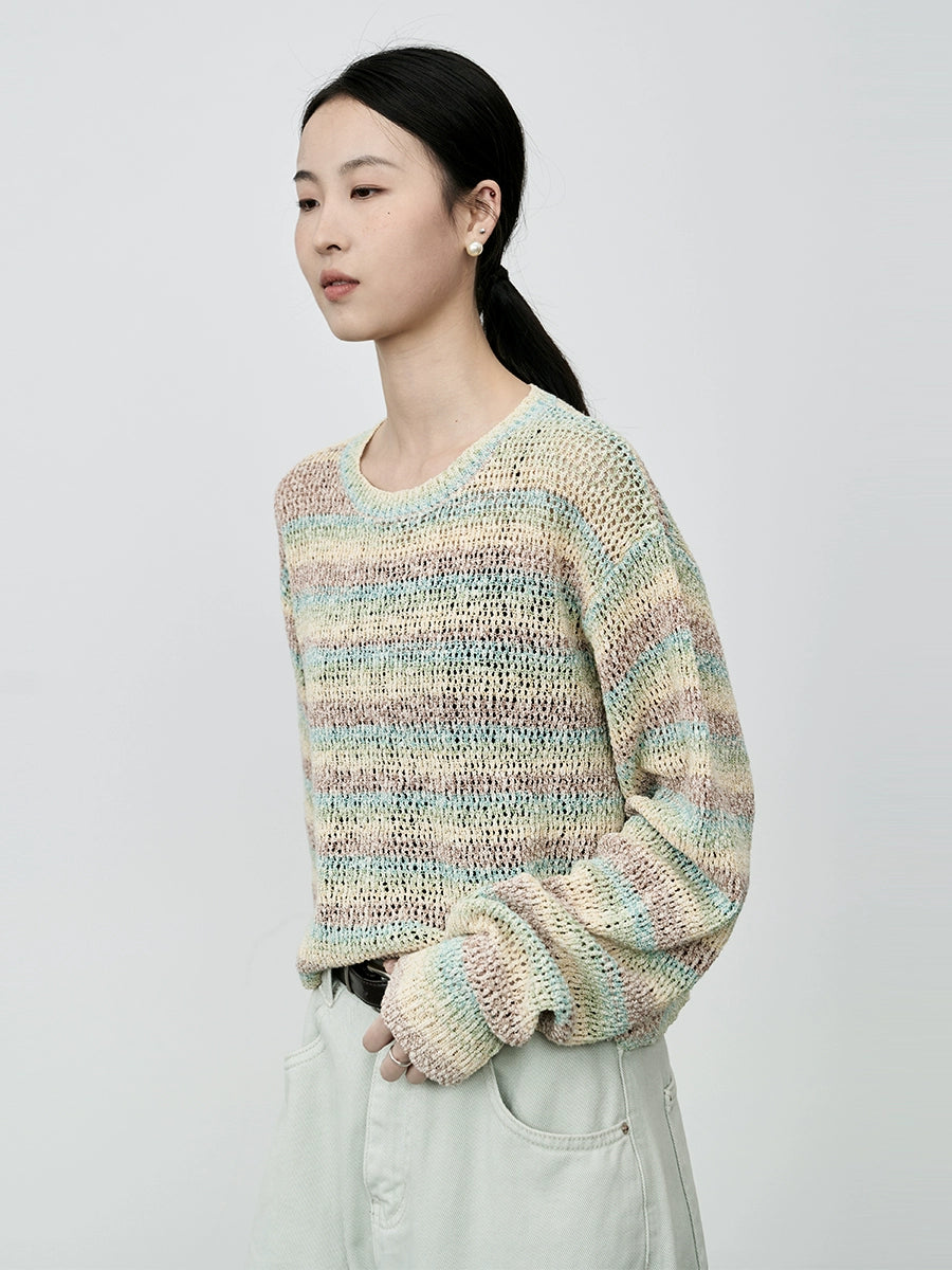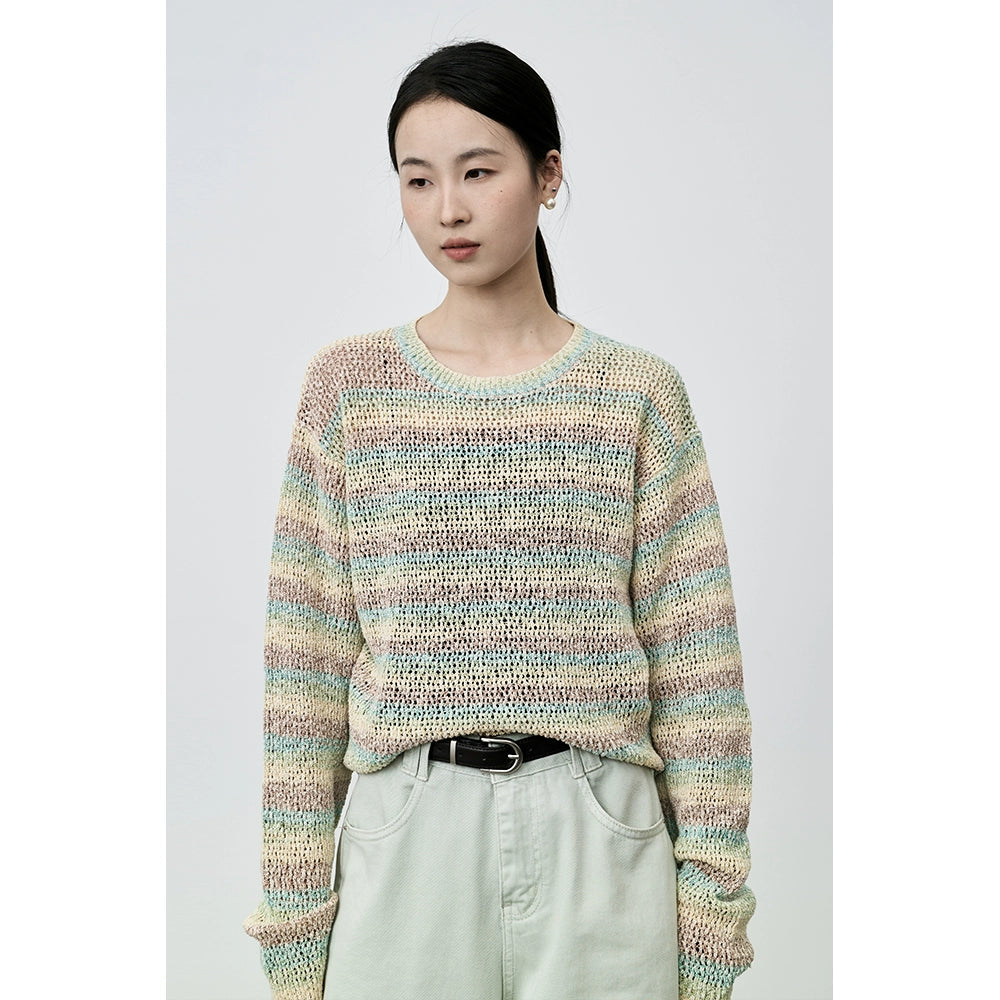 Suéter de punto suave con leche cerosa y macarrón de CAREMIND, jersey de rayas de manga larga suave y holgado