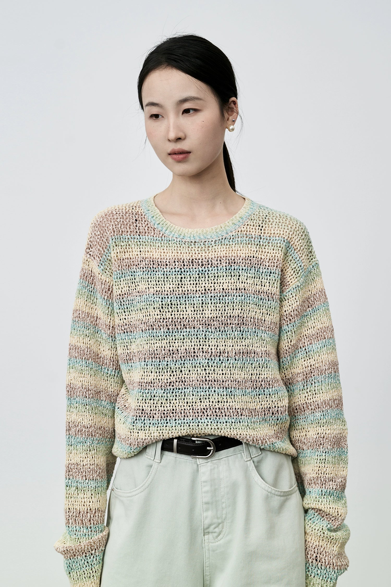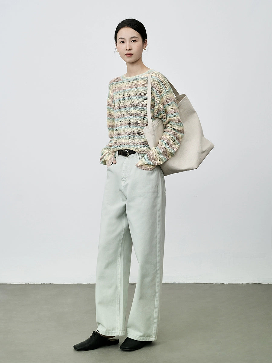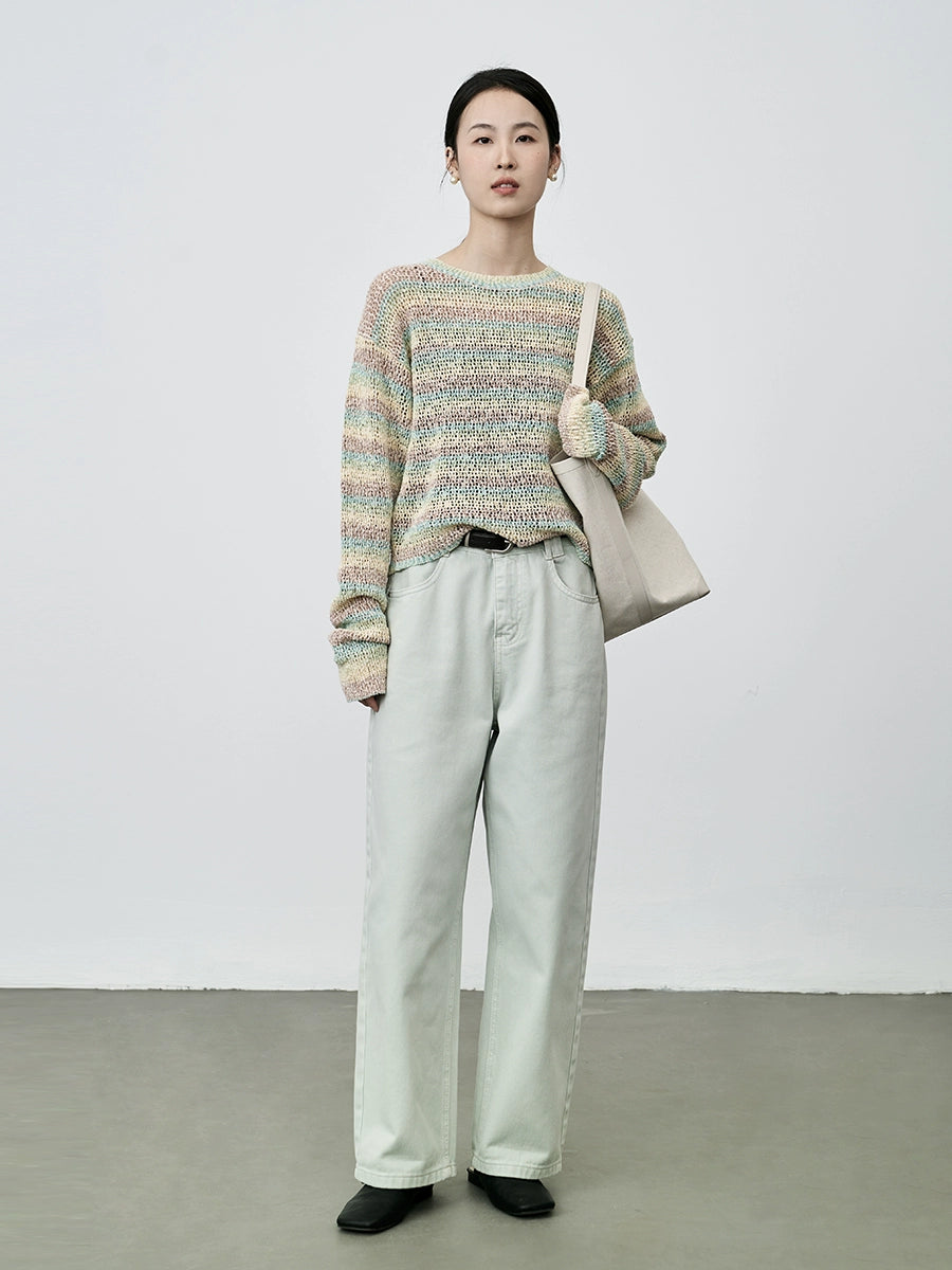 Suéter de punto suave con leche cerosa y macarrón de CAREMIND, jersey de rayas de manga larga suave y holgado