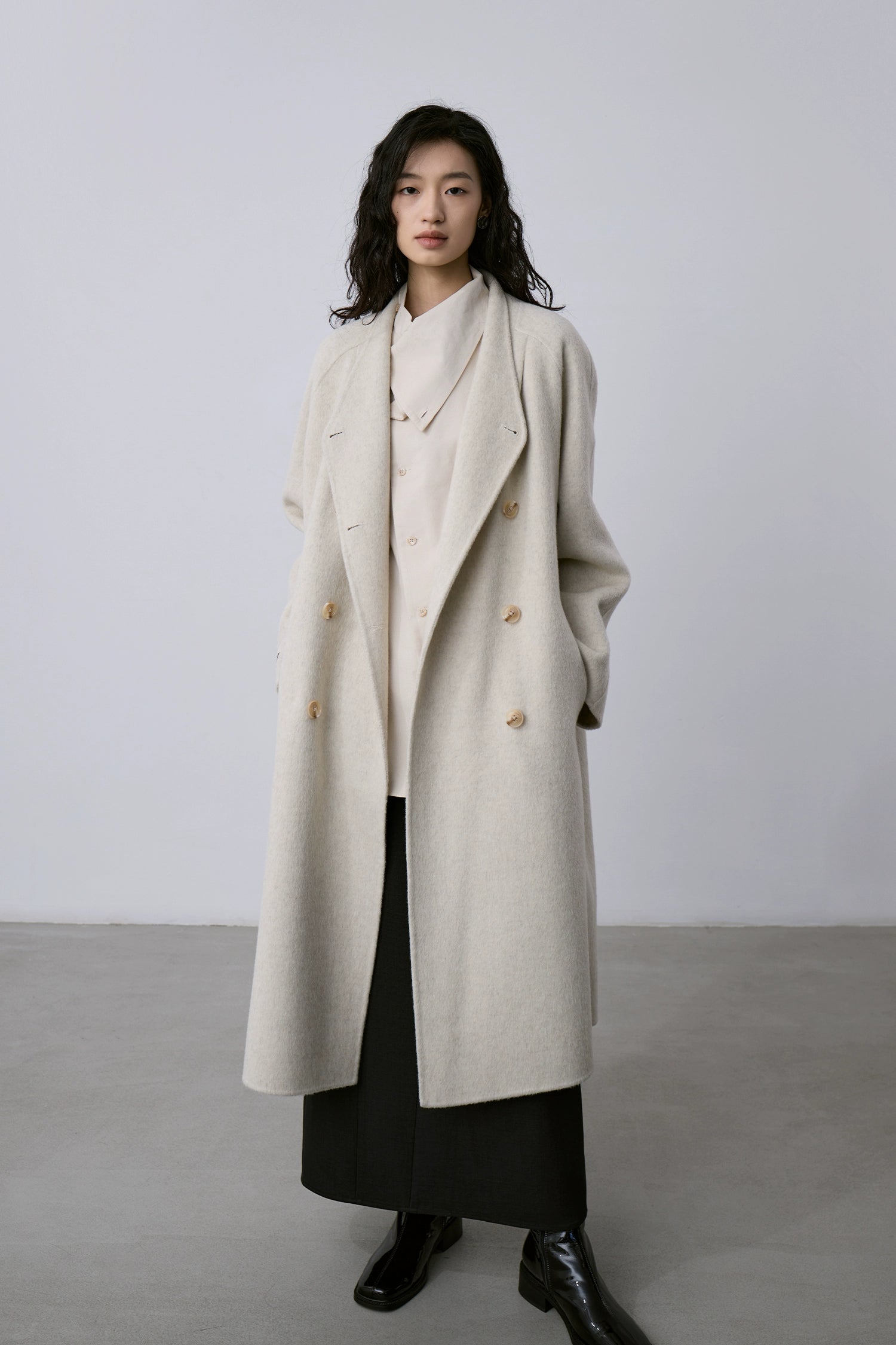 CAREMIND Maillard abrigo de lana de cachemira de doble cara abrigo cruzado de longitud media abrigo de temperamento de otoño e invierno ropa de mujer