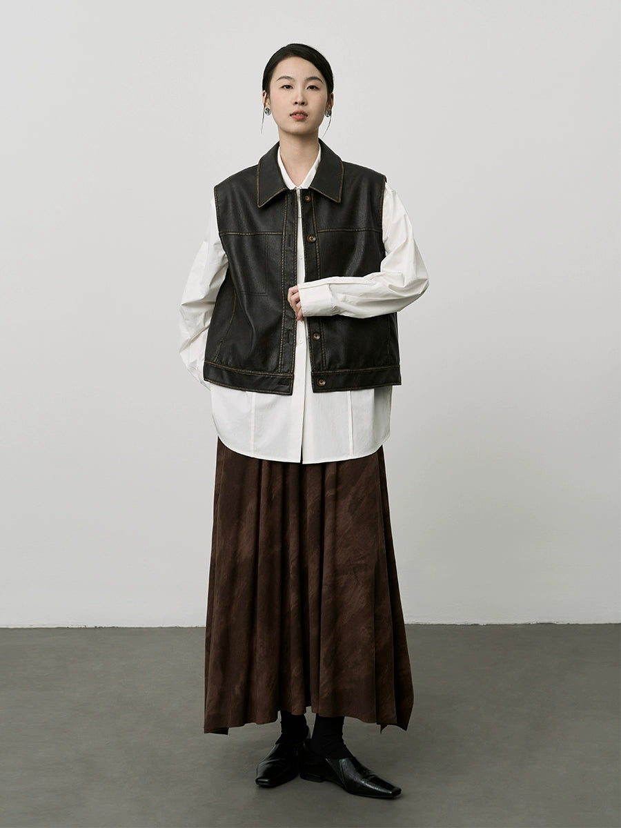 Falda superdelgada color café oscuro retro Maillard de CAREMIND, falda plisada irregular para niños