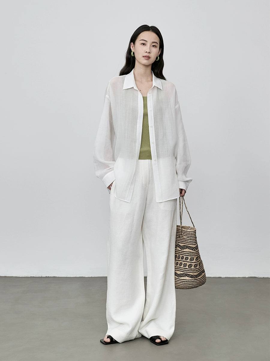 Pantalones de lino de estilo minimalista con dinero antiguo de CAREMIND para uso diario en otoño, pantalones anchos de pierna y cintura alta, pantalones casuales sueltos