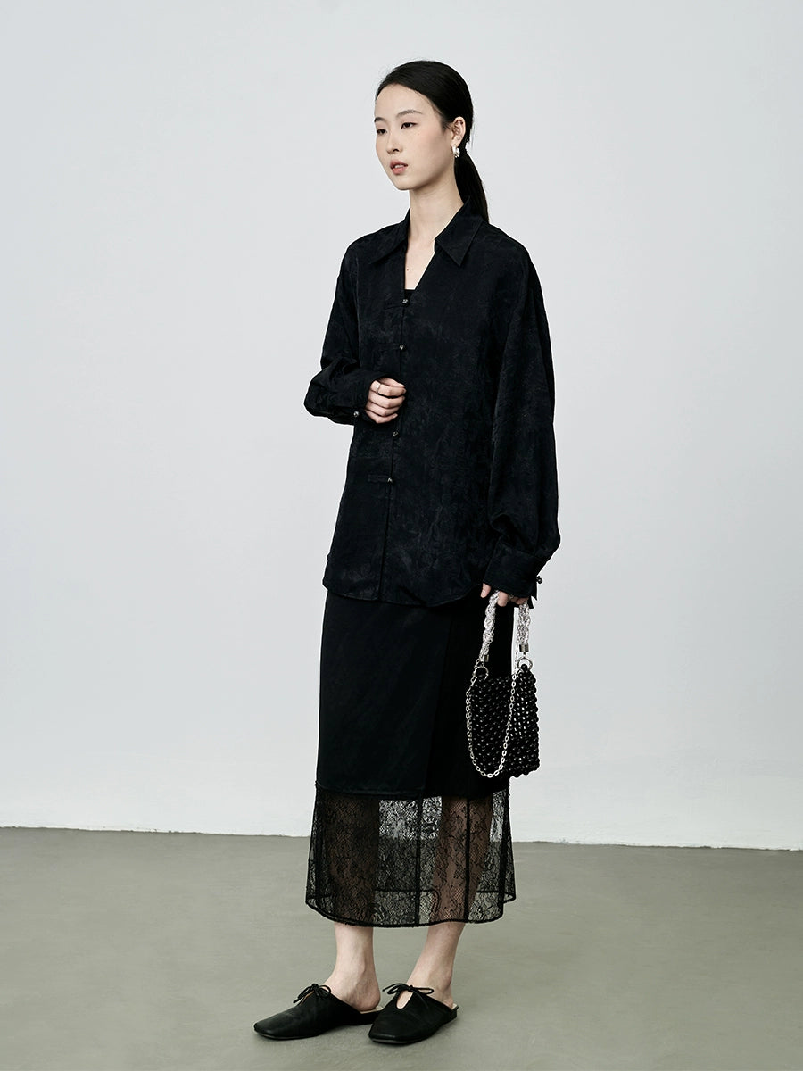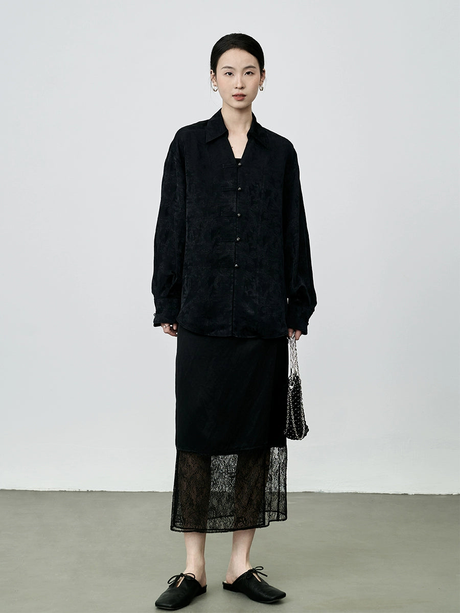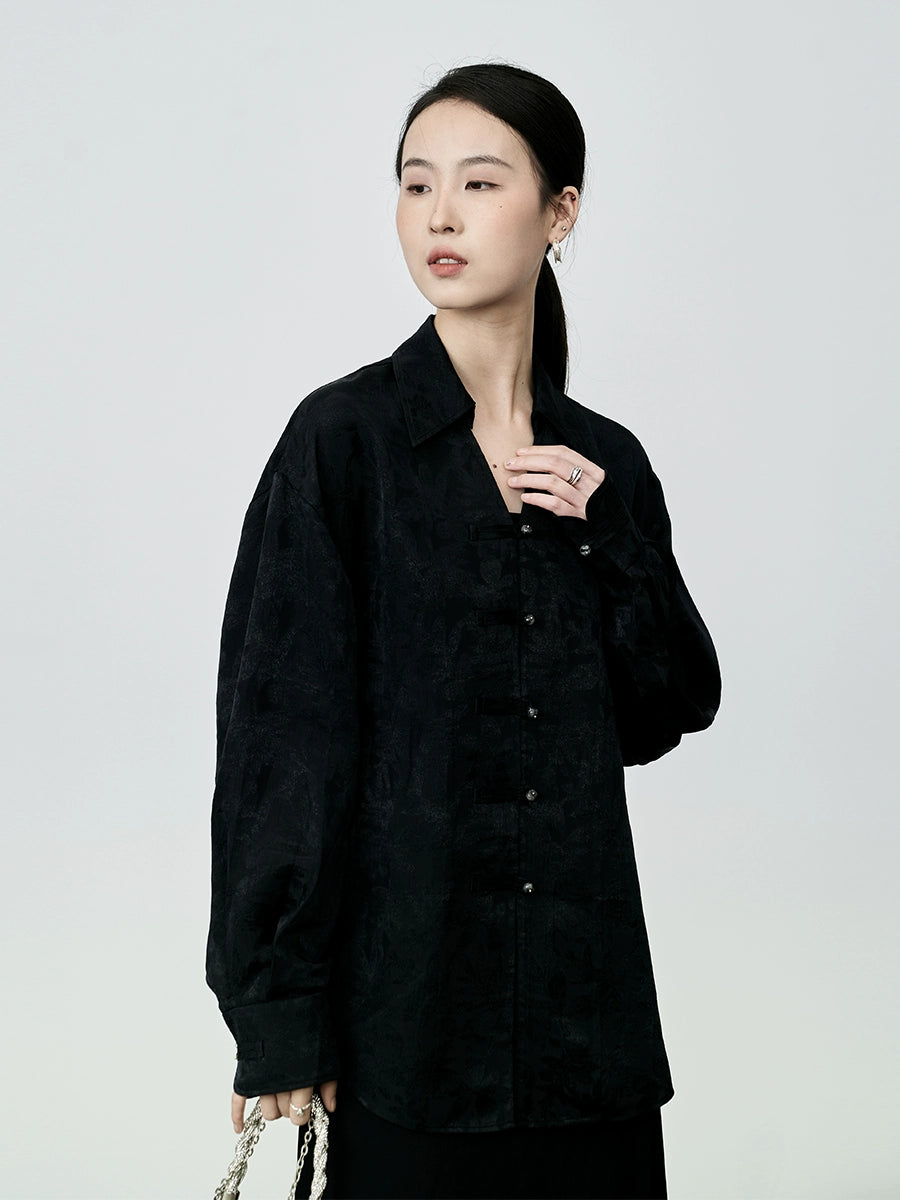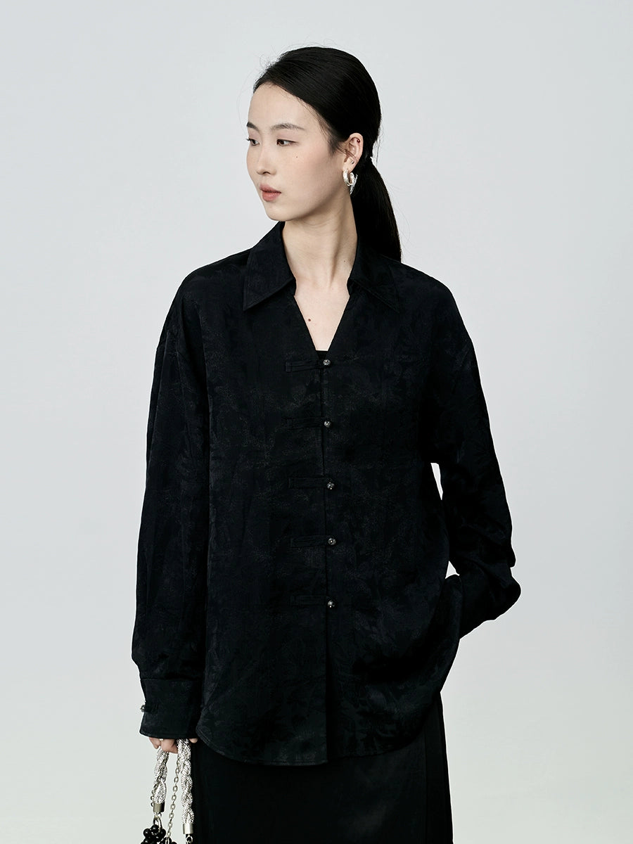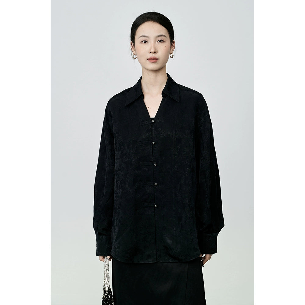 Camisa de jacquard con estampado oscuro chino de CAREMIND, camisa pequeña de manga larga con botones de estilo nacional de alta gama