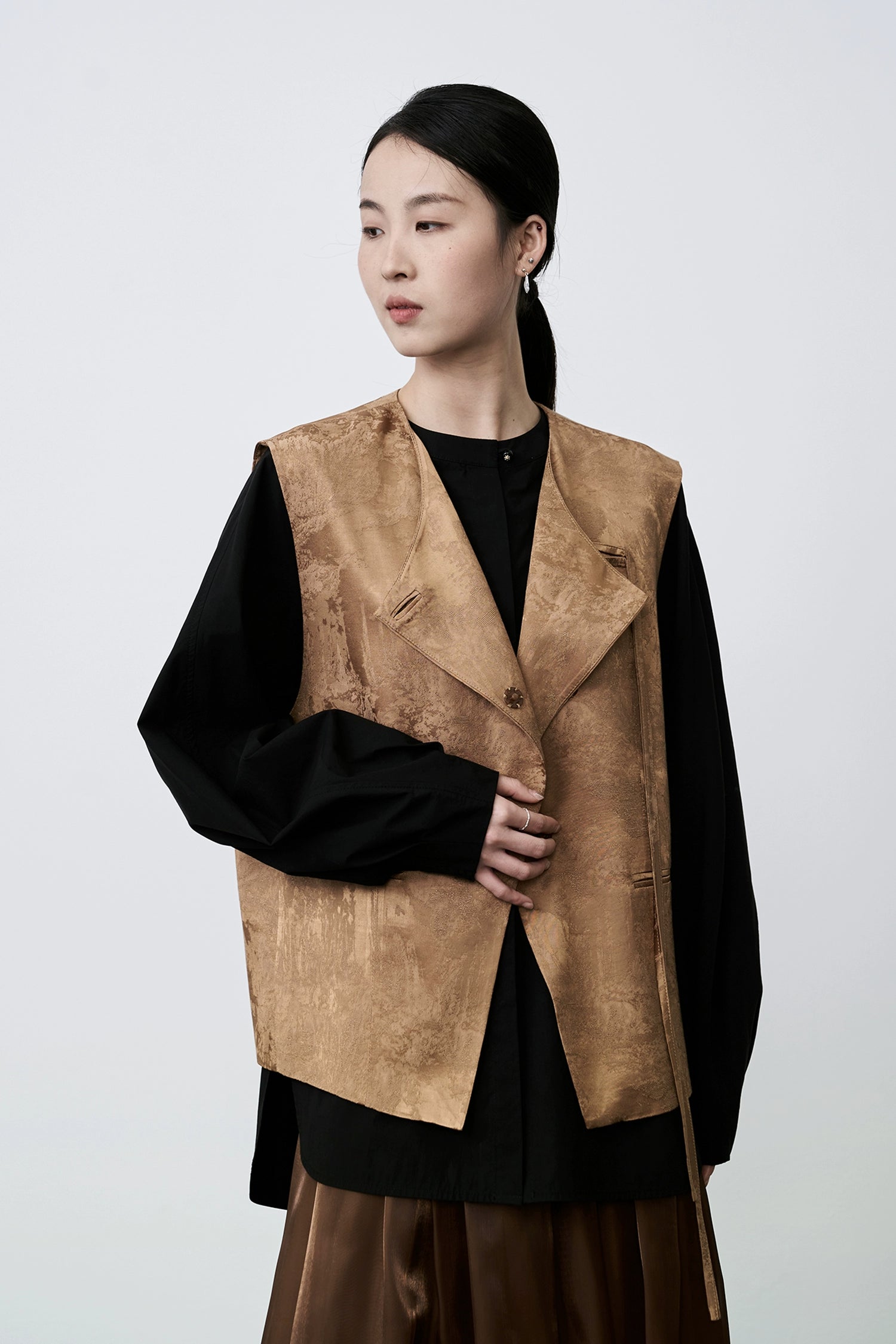 CAREMIND Nuevo chaleco de estilo chino para mujer, pieza extraordinaria, elegante chaqueta corta bordada en jacquard, primavera y otoño