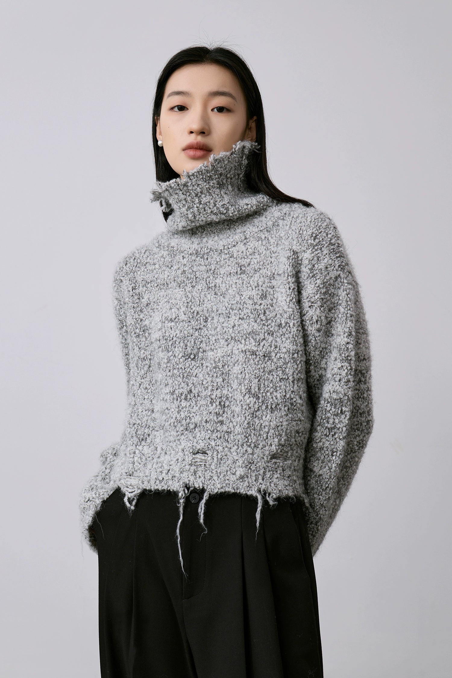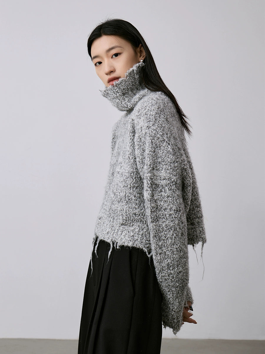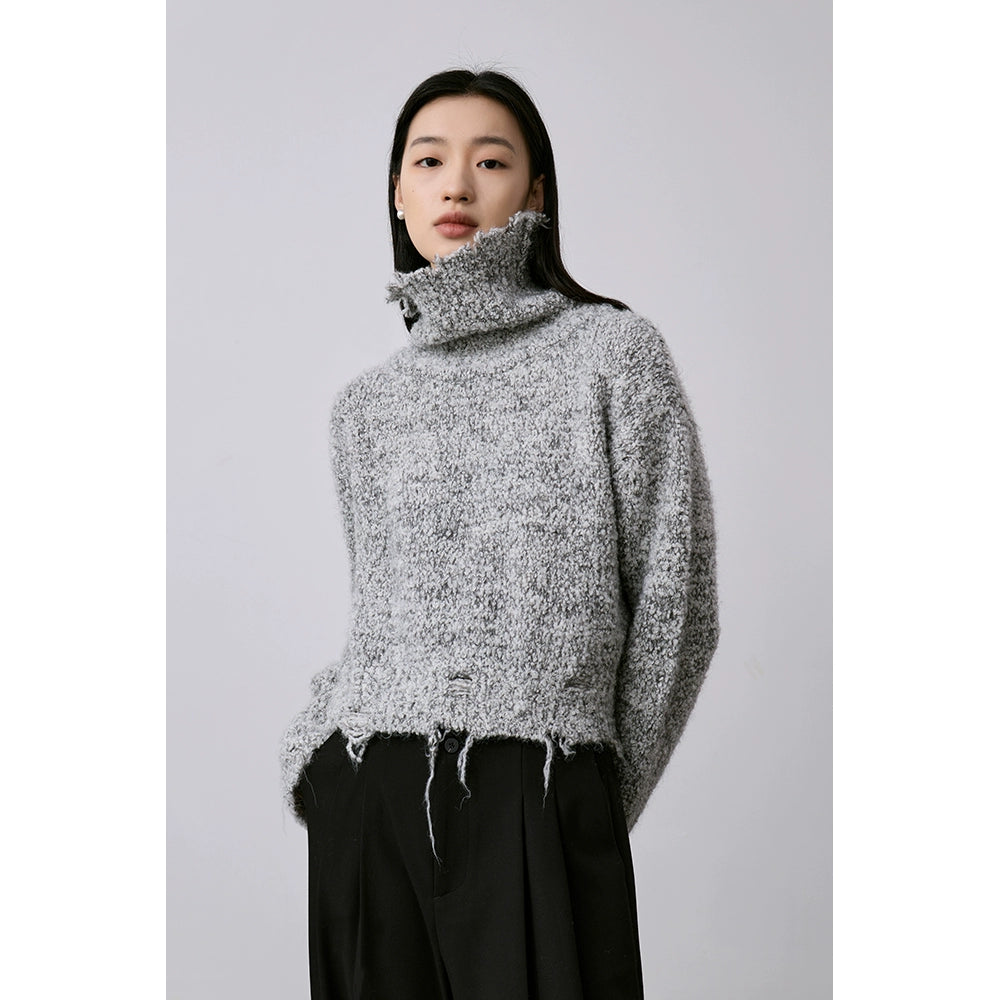 CAREMIND nuevo suéter de punto suave y encerado con viento perezoso, suéter de cuello alto con parte superior irregular, suéter grueso y cálido