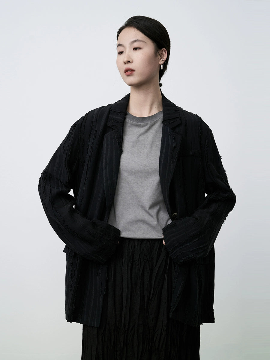 Camisa de textura fuerte de Tencel premium para mujer con blazer plisado tridimensional con diseño de nicho de CAREMIND