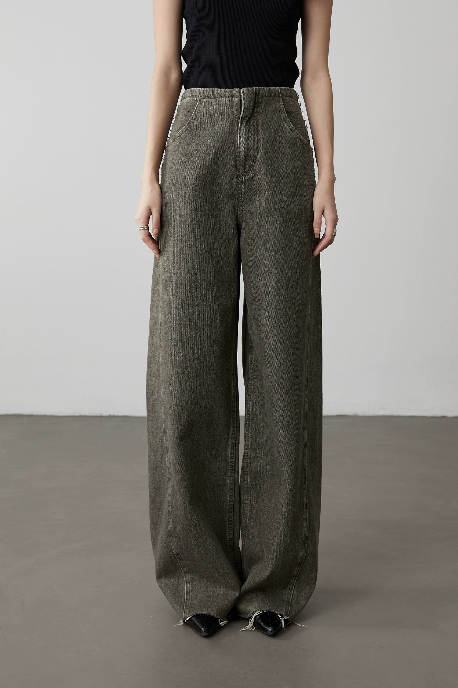 CAREMIND Los jeans de pierna ancha y estrechos de color verde oliva antiguo muestran pantalones de trapeador de piso recto y delgado para mujer modelos de primavera y otoño