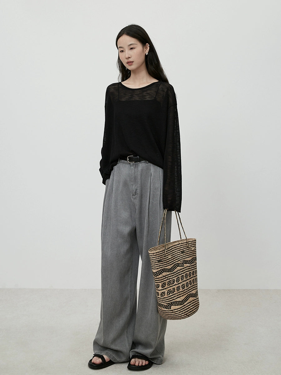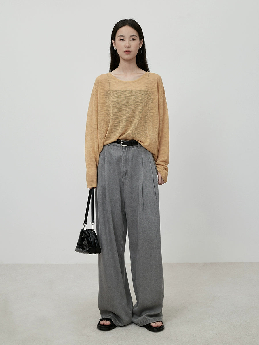 CAREMIND Original Chic Turmeric Light Blusa Lazy Holiday Style Cuello Redondo Suéter Superior Para Mujer