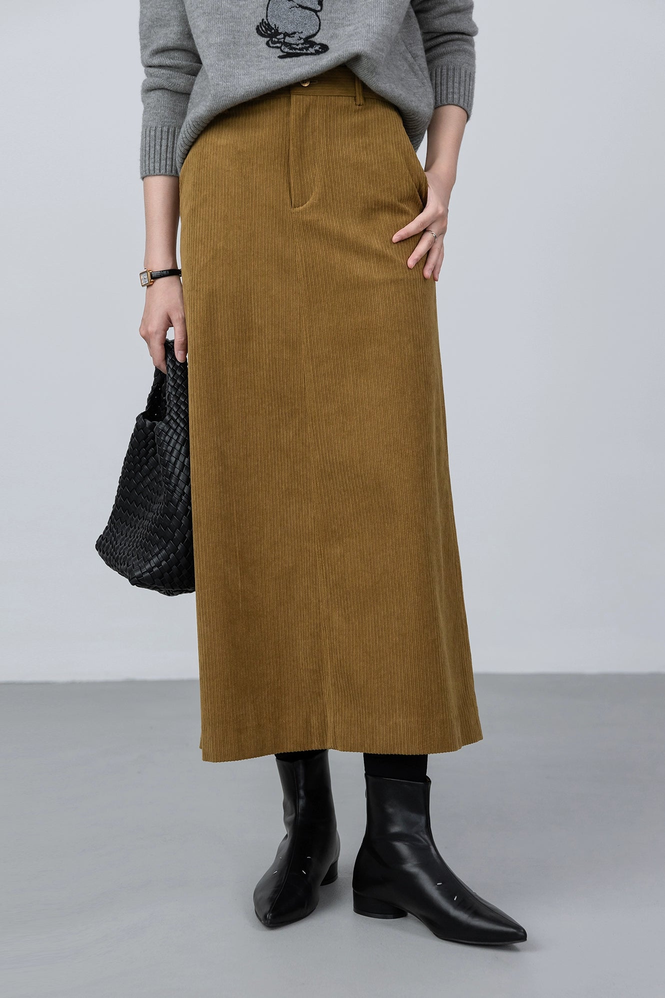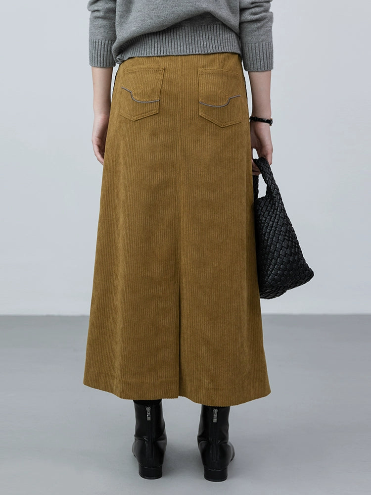 Falda retro CAREMIND que cubre la carne, falda mediana y larga de pana color jengibre para mujer