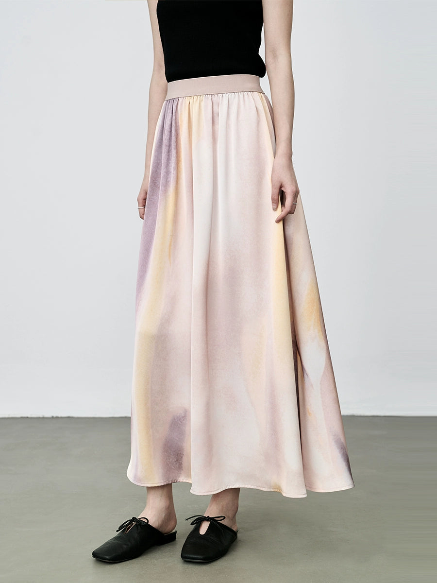 CAREMIND Falda manchada de color sal gran péndulo industria pesada Un personaje literario suave vestido largo