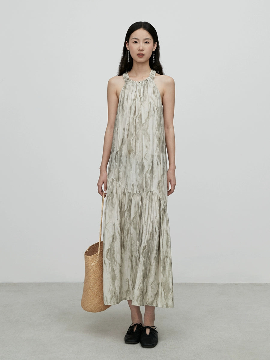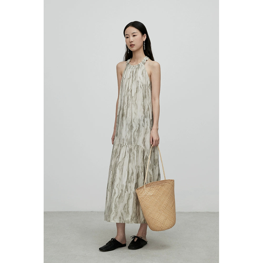 CAREMIND vacaciones en la playa hermoso vestido de cuello nuevo chino mancha sin mangas vestido de largo medio verano