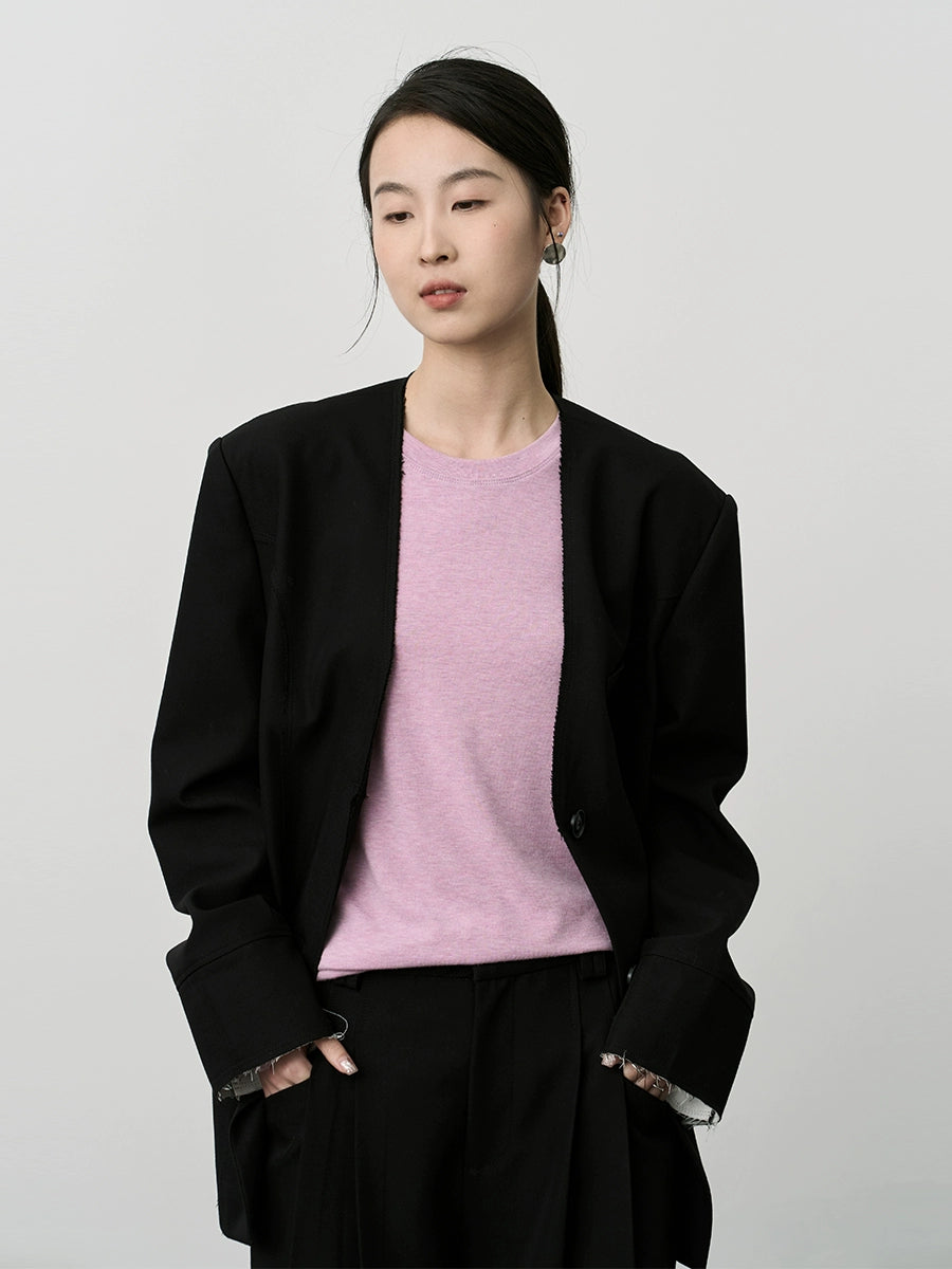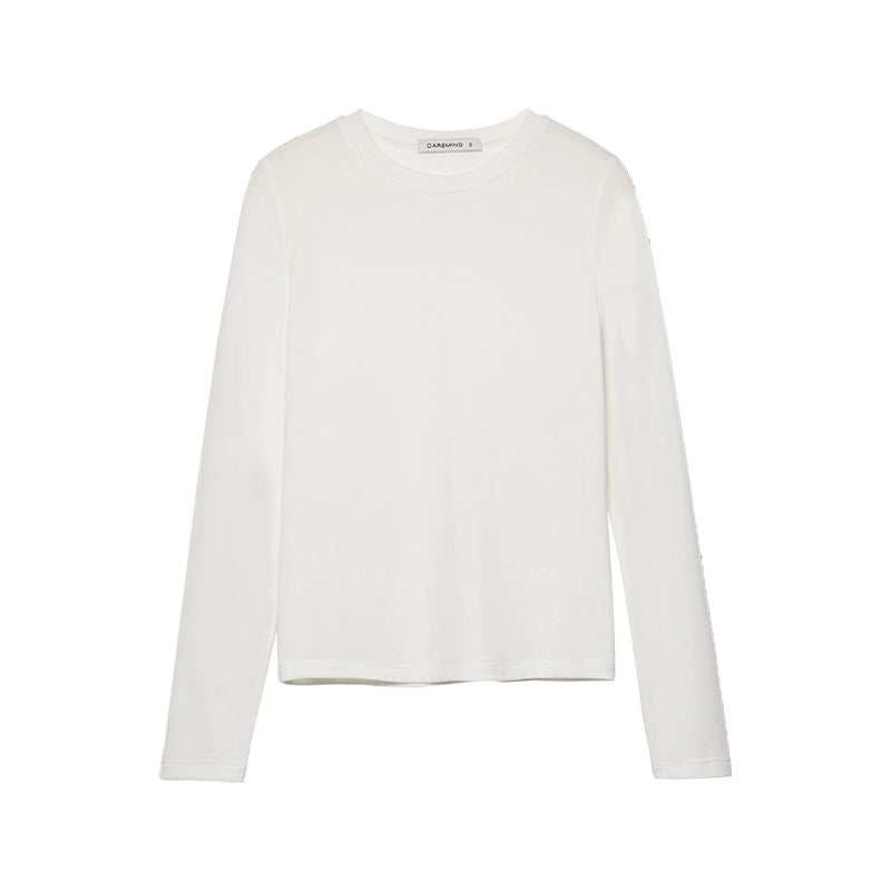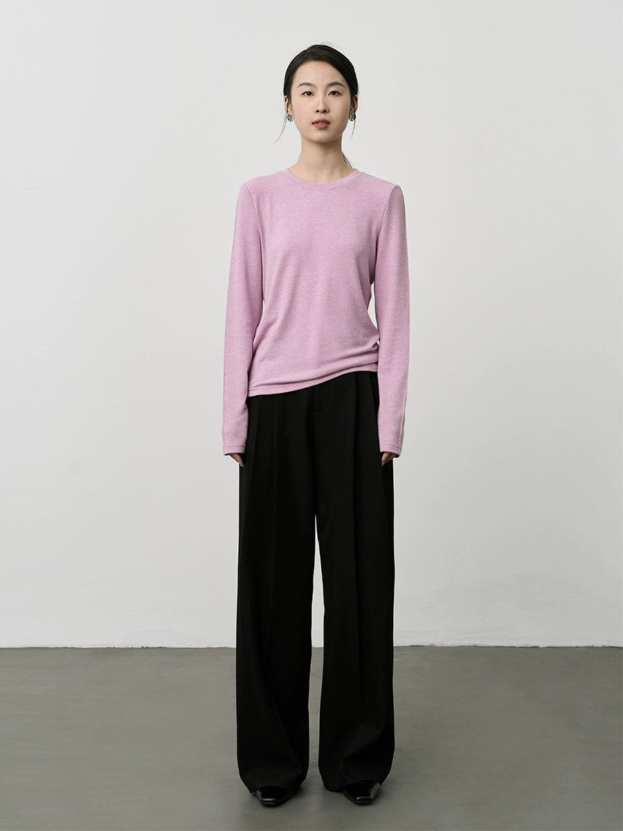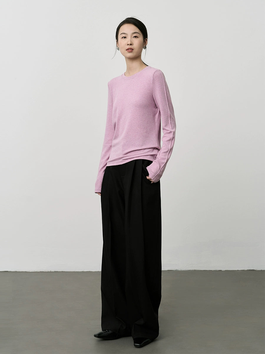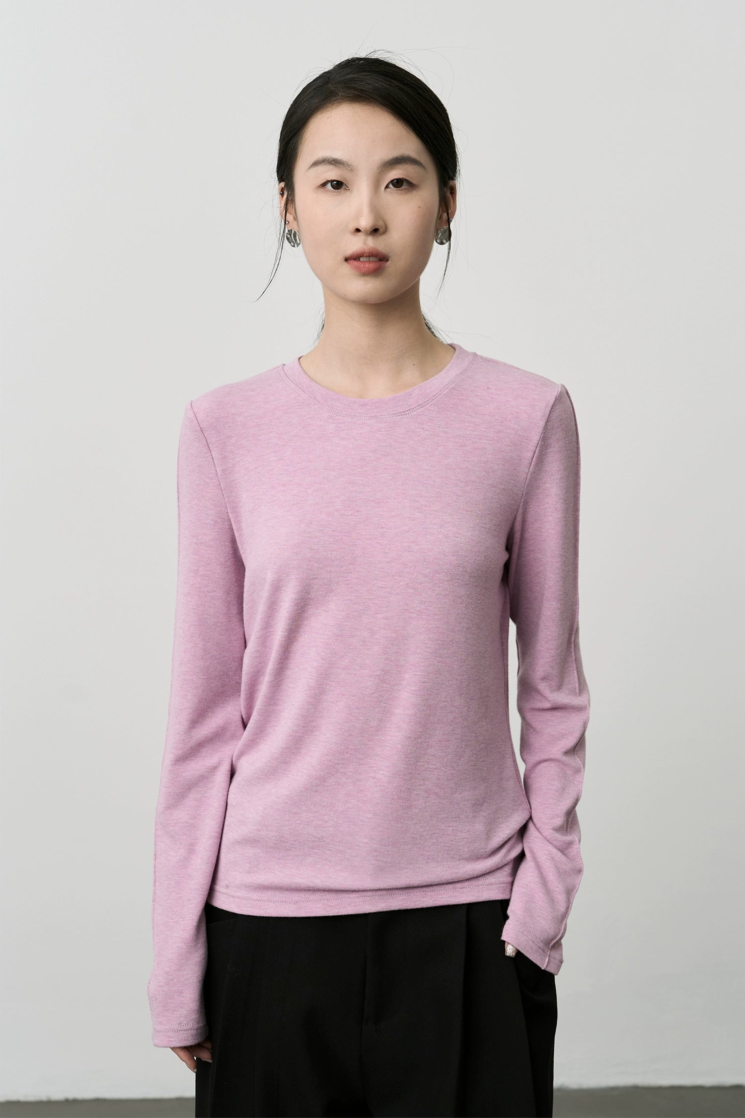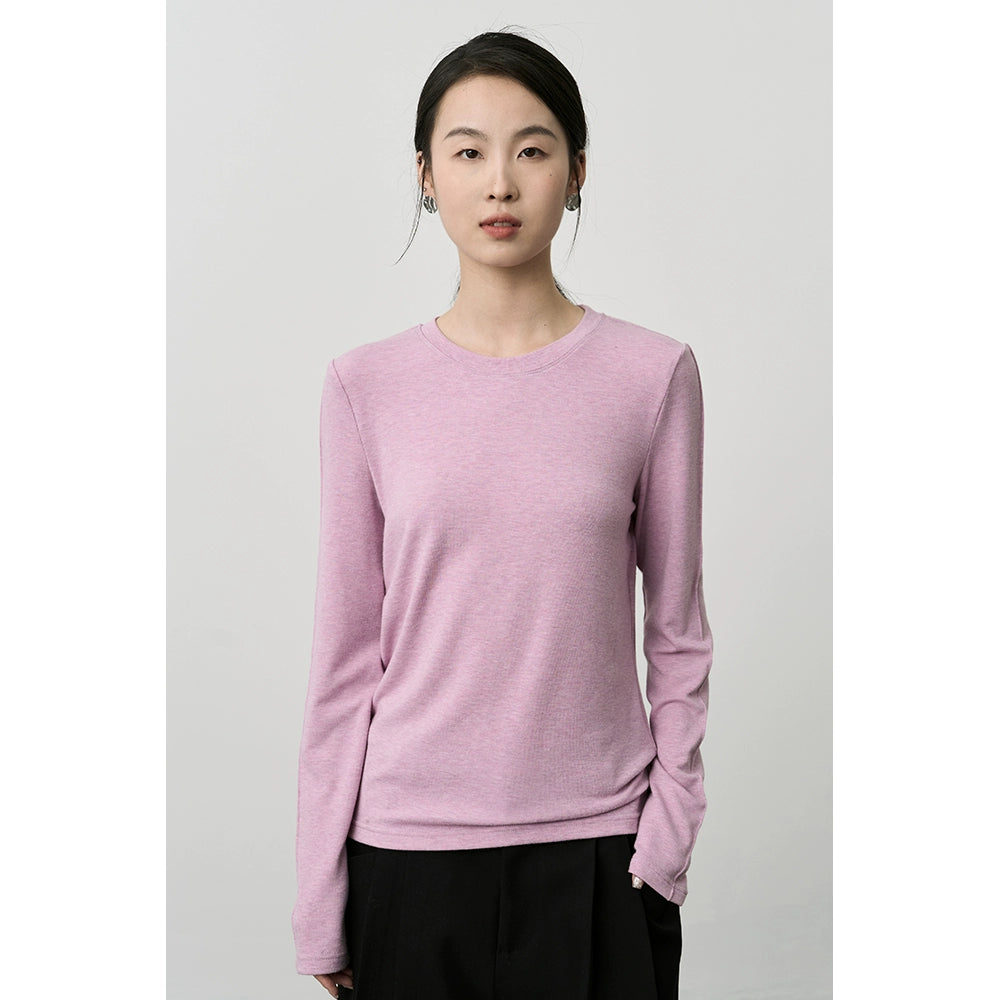 Camiseta de cuello redondo con parte inferior de color rosa suave y ceroso de CAREMIND 2024 Nueva camiseta de manga larga interior premium