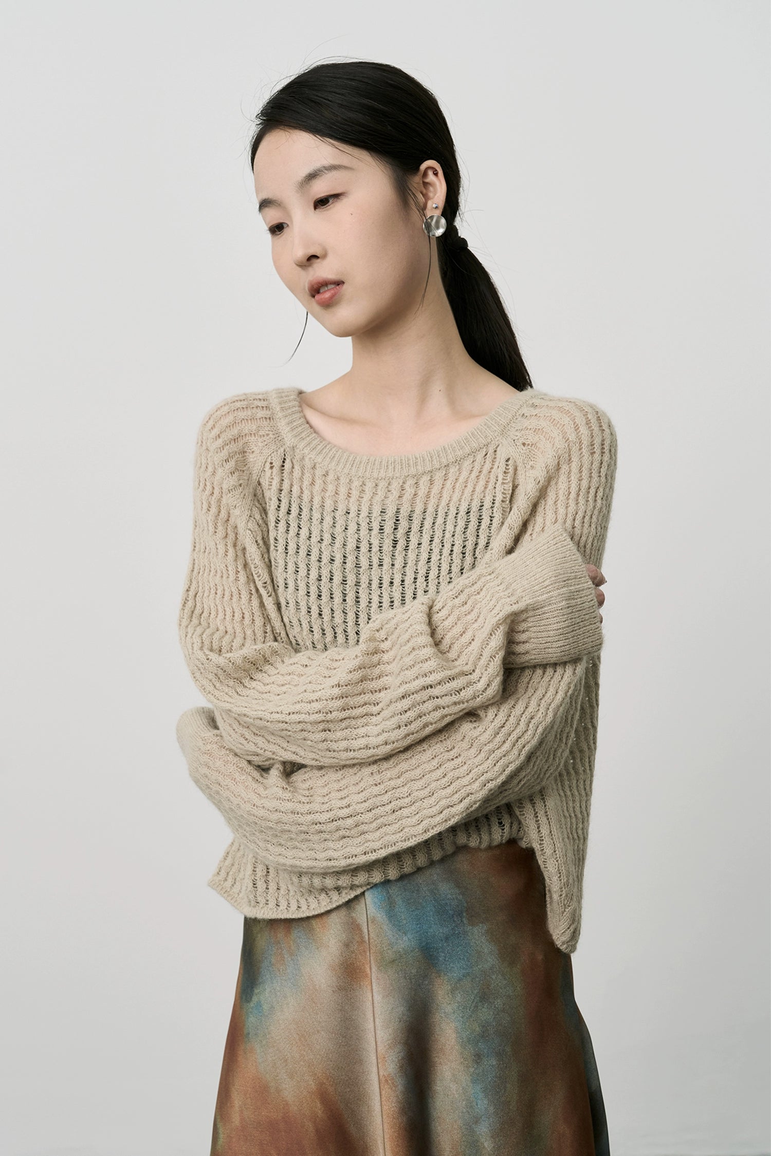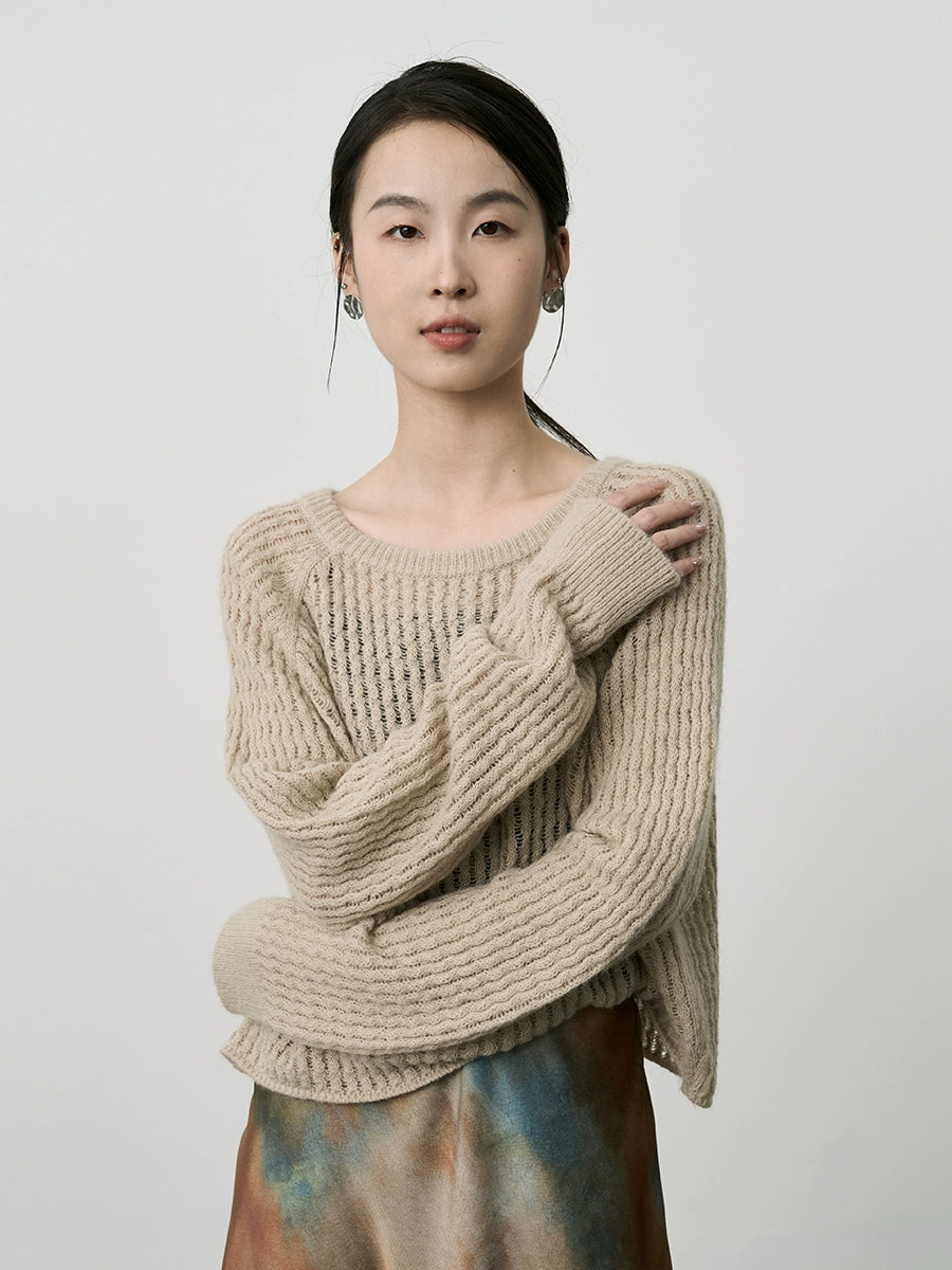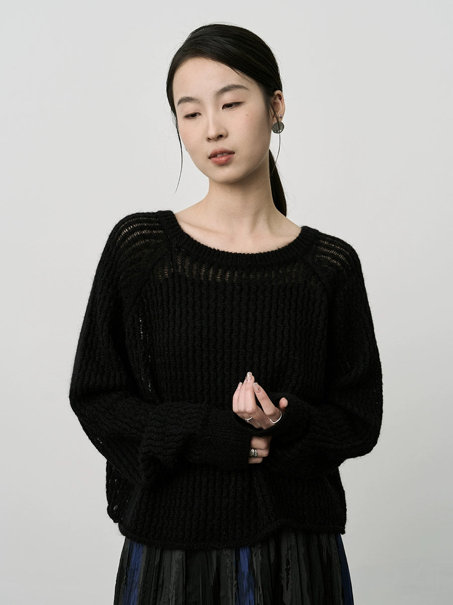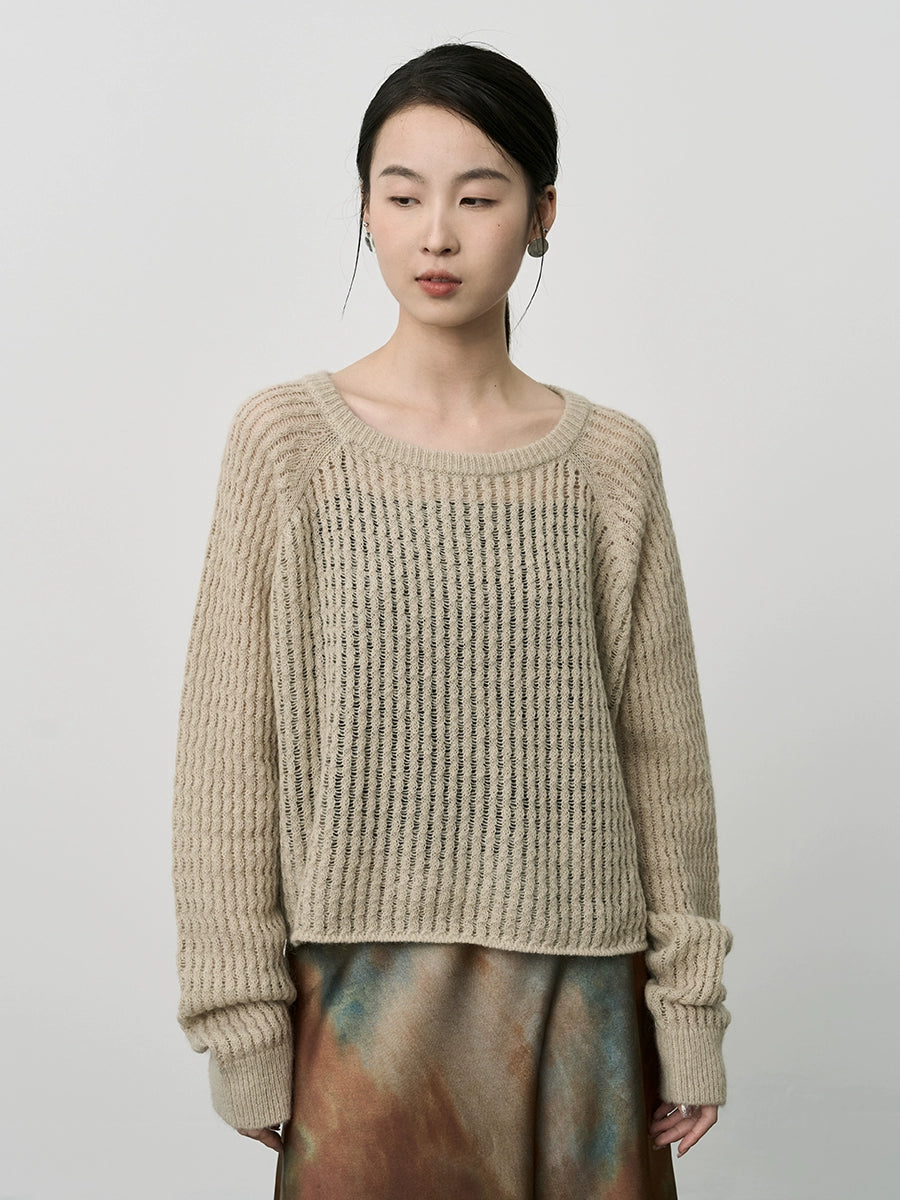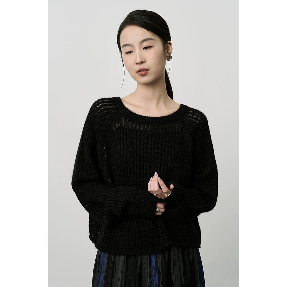 Suéter hueco retorcido de mohair suave y ceroso de CAREMIND Top corto versátil de cinco puntos con espinas suaves