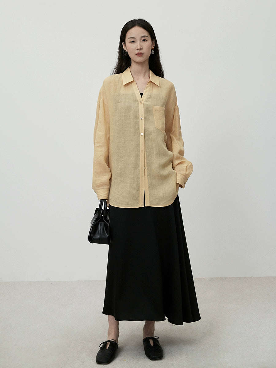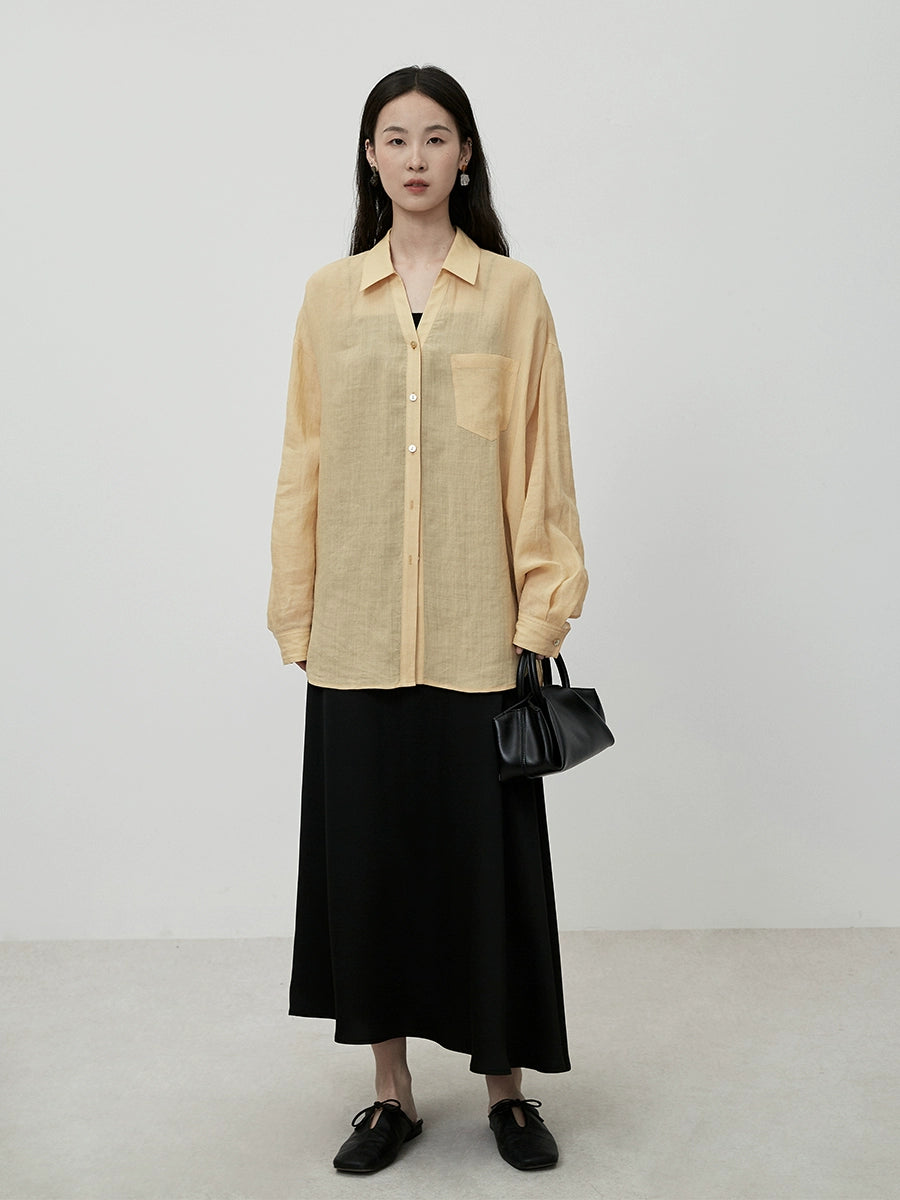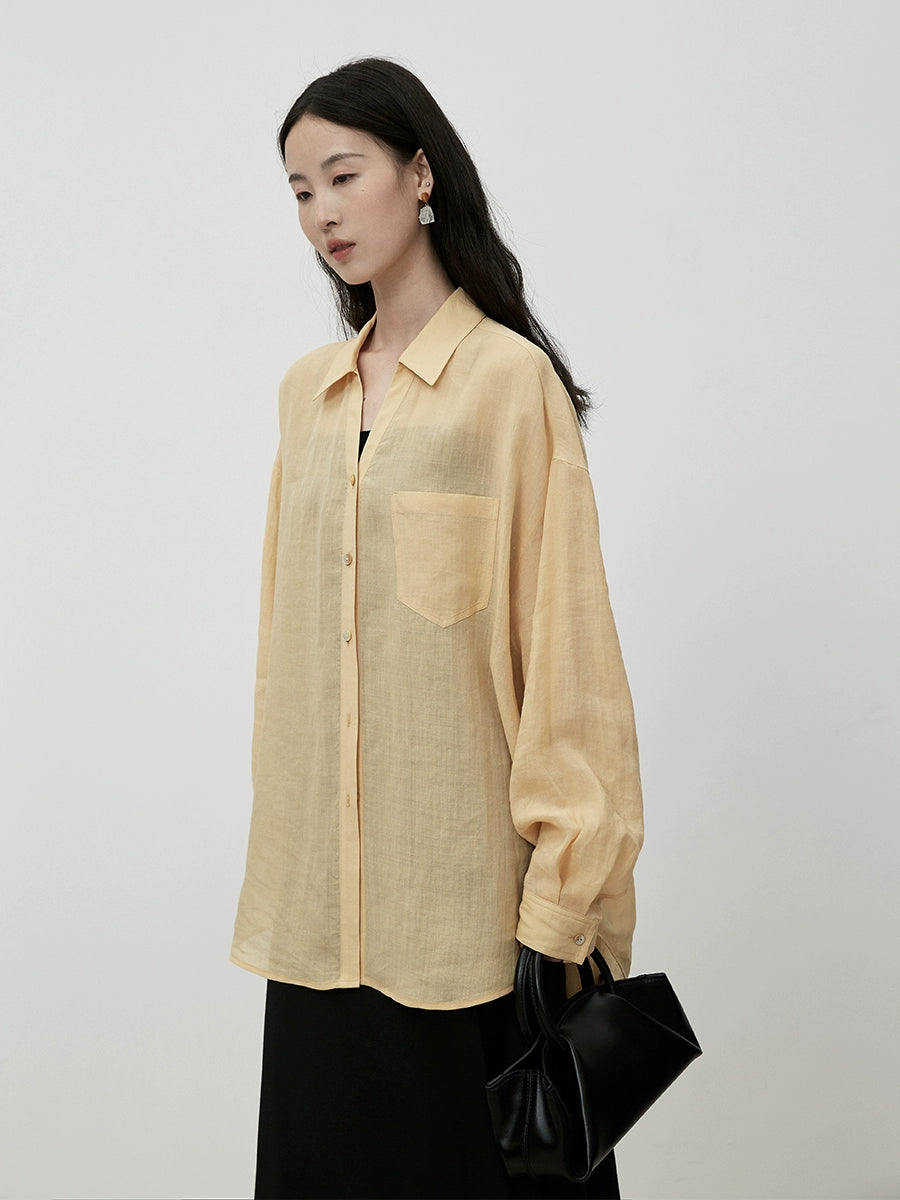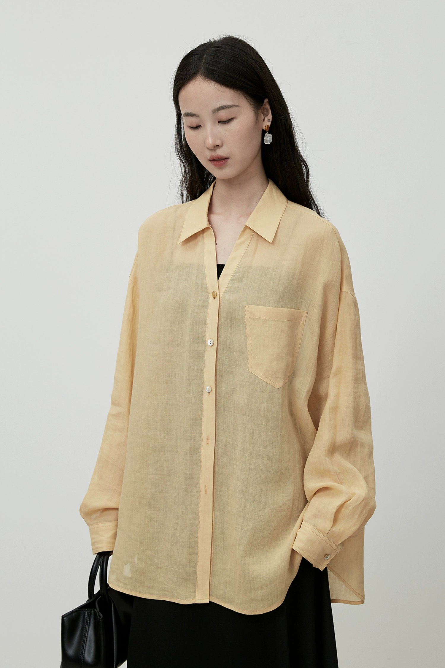 Camisa fina con protector solar de verano CAREMIND Camisa exterior de manga larga amarilla elegante y fresca de Ramie