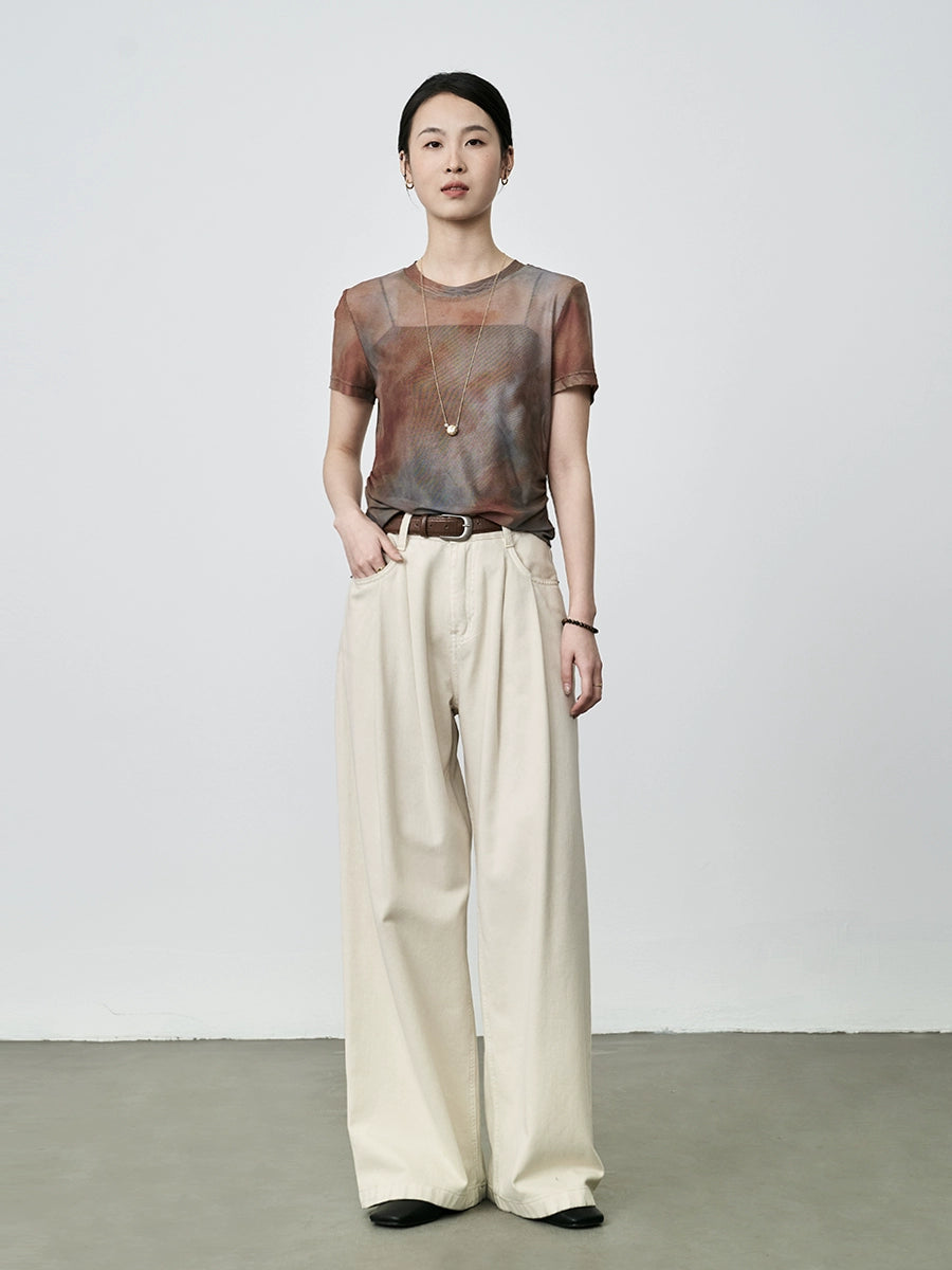 Camiseta ajustada de manga corta con cuello redondo, malla con efecto tie-dye y diseño de manchas de atardecer de CAREMIND