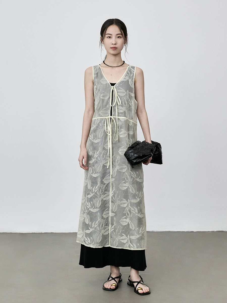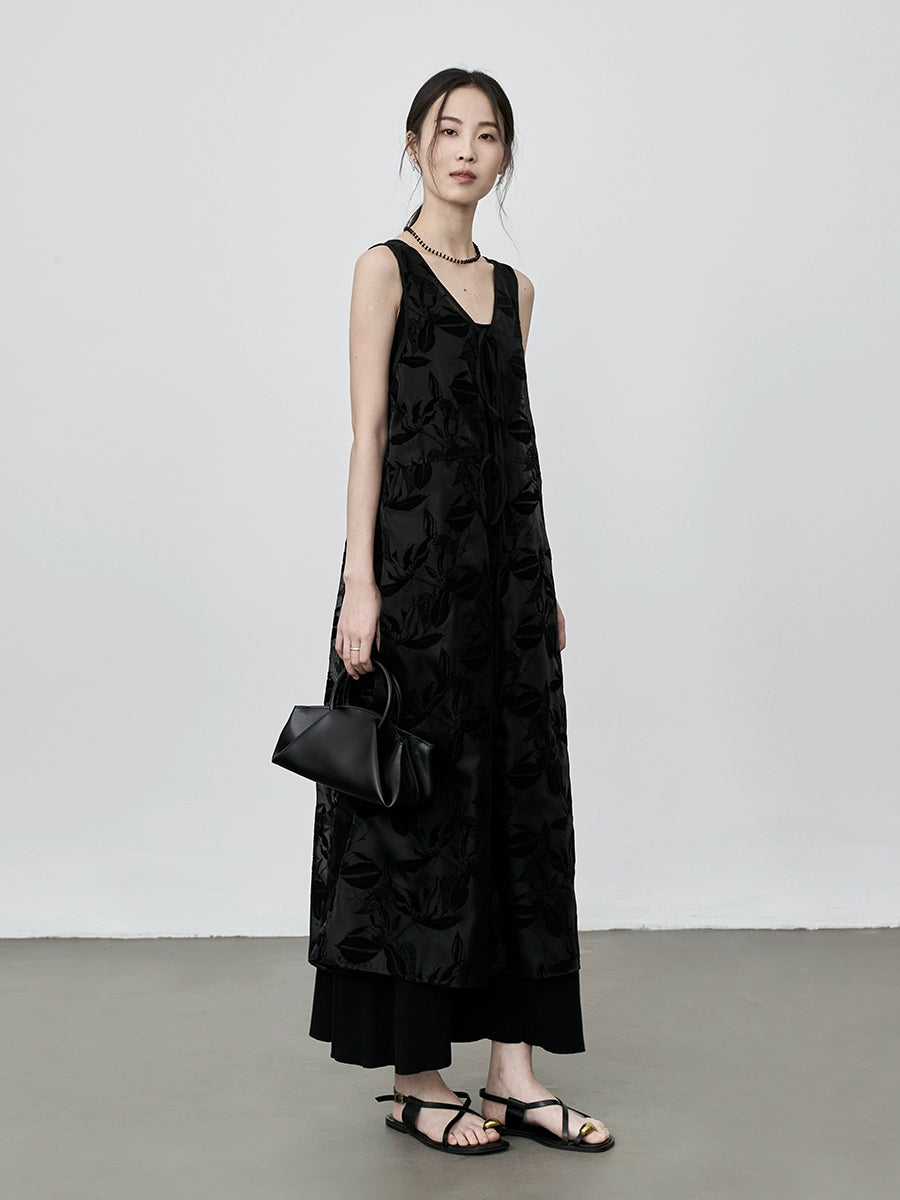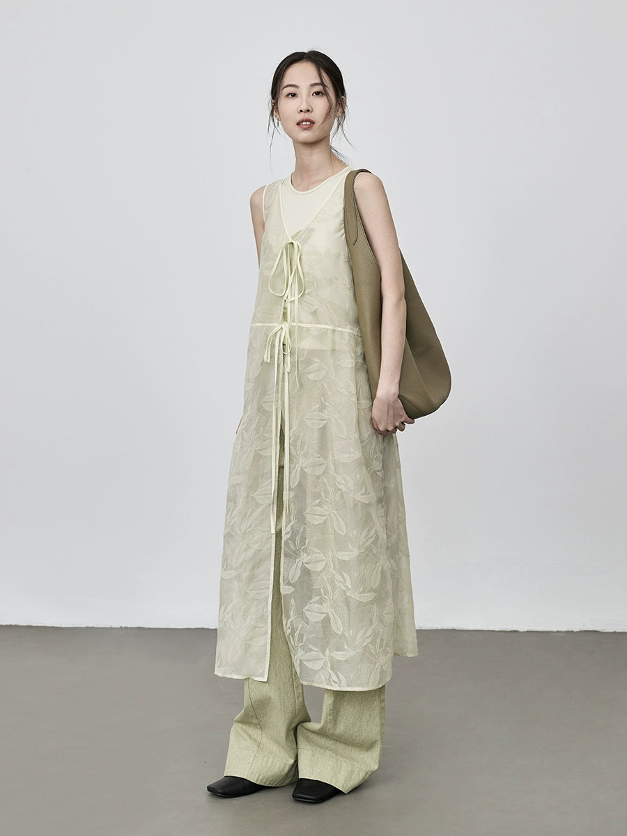 CAREMIND Vestido tipo chaleco sin mangas con relieve fino, blusa exterior holgada con tirantes apilados para mujer