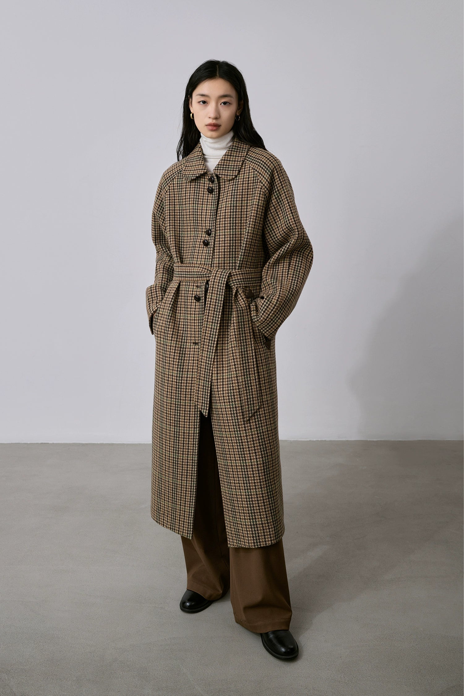 CAREMIND Thousand Birds - Gabardina con diseño de cuadrícula, de lana, de botonadura sencilla, con solapa y tiras medianas y largas, ropa de mujer