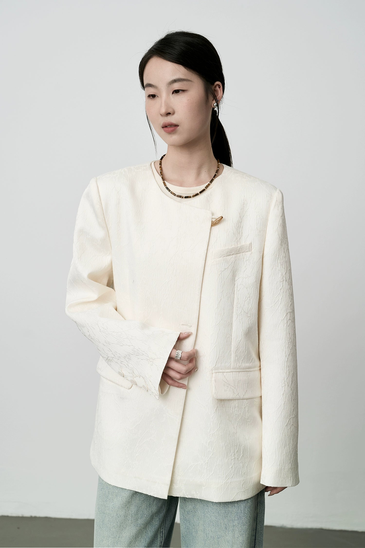 Chaqueta de traje con textura de calidad para mujer, diseño chino, color albaricoque blanco, de CAREMIND