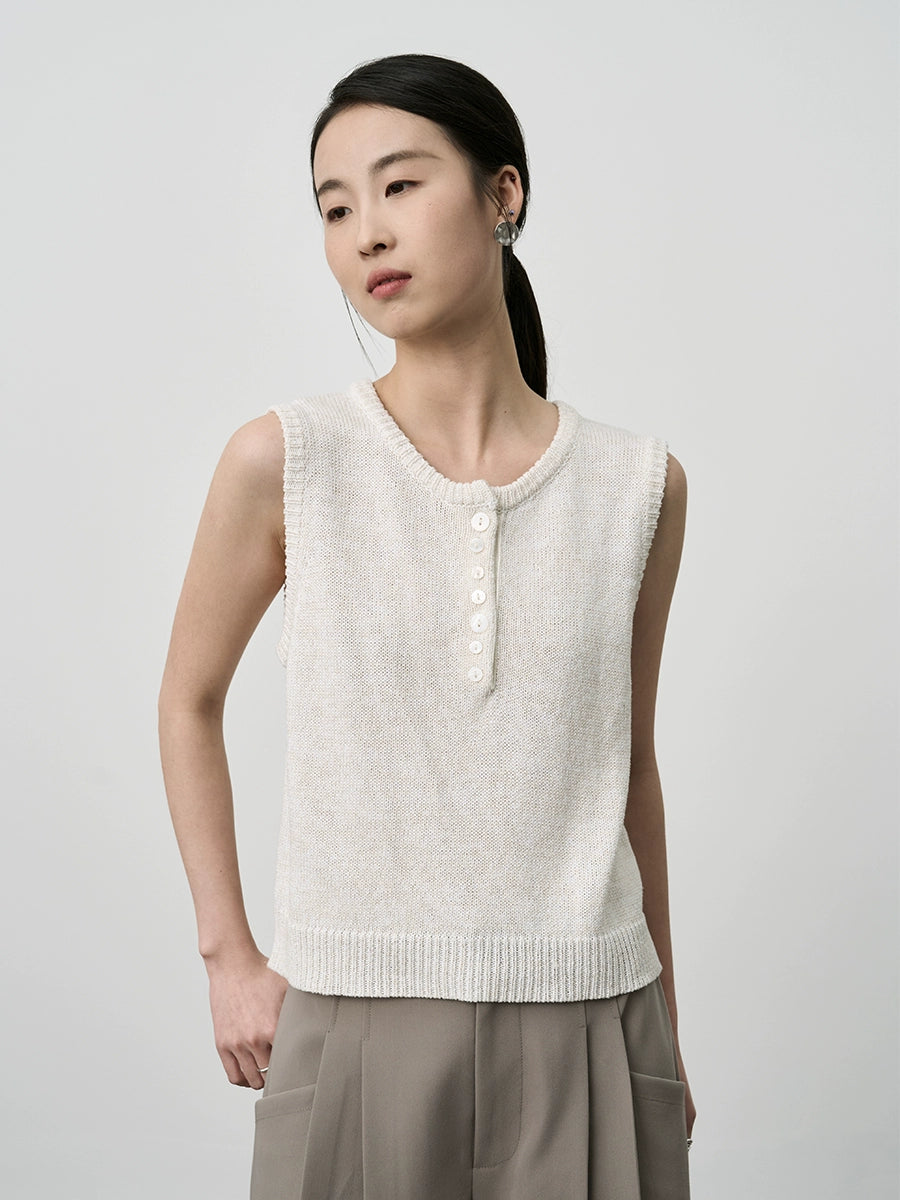 Camiseta sin mangas con hombros descubiertos de tencel blanco de CAREMIND, diseño de botones irregulares para mujer, top corto