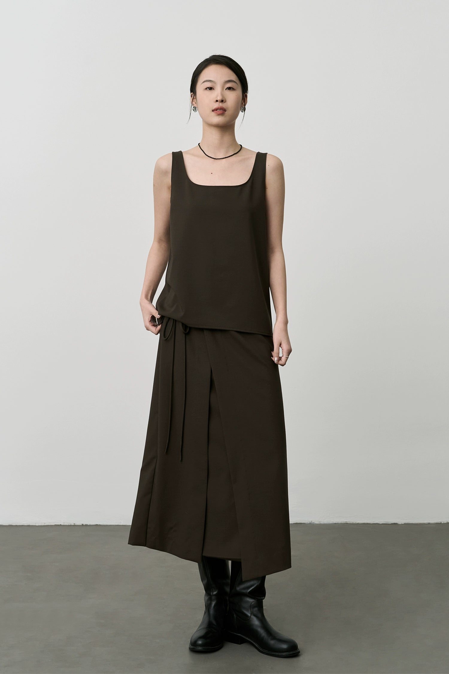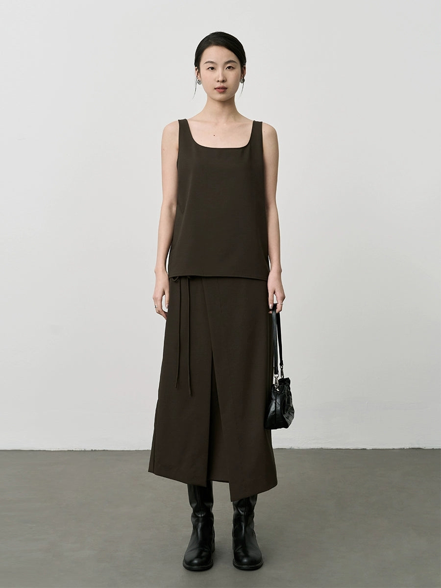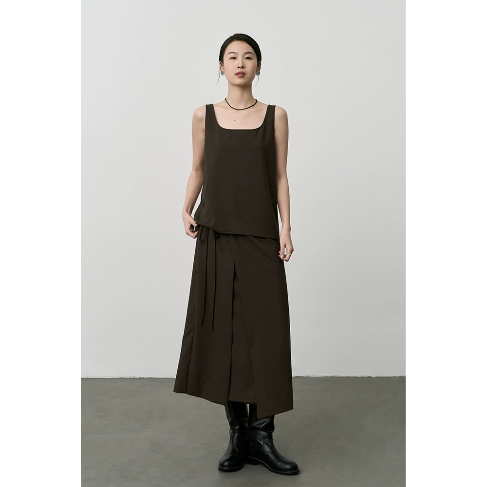 Conjunto de dos piezas con chaleco y cuello cuadrado estilo Yamamoto de CAREMIND, falda irregular