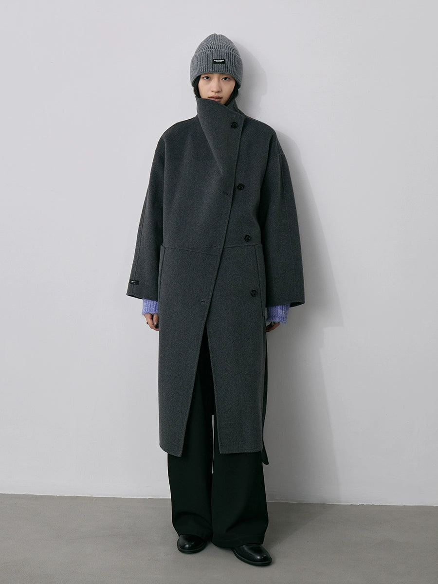 CAREMIND100% abrigo de lana de doble cara de industria pesada de otoño e invierno abrigo de mujer intelectual con correa mediana y larga