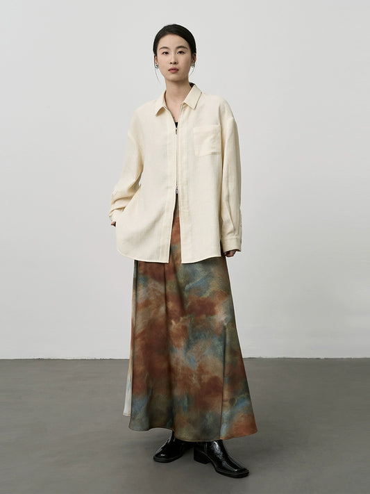 CAREMIND Chemise décontractée à double fermeture éclair texturée en sel, chemise ample et paresseuse à la crème pour le vent