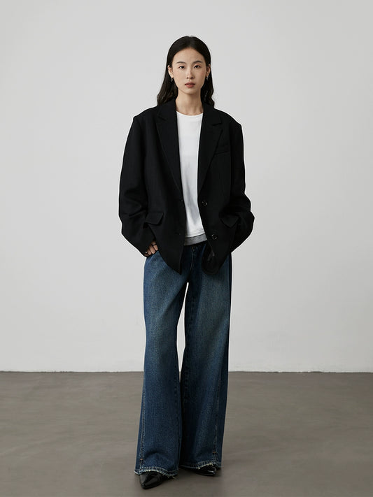 Jean droit bleu délavé CAREMIND début d'automne, pantalon large décontracté polyvalent haut et fin