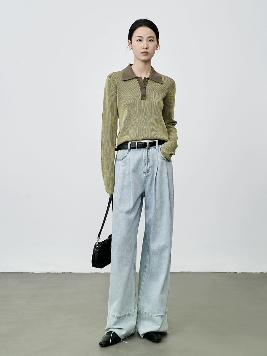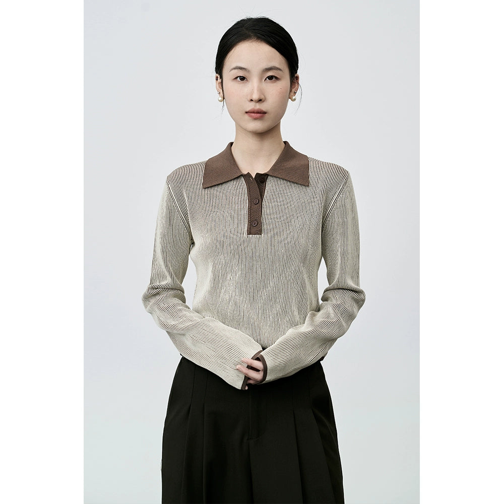 CAREMIND Pull polo court en maille française Haute avec revers contrastant sur le devant et sur les épaules