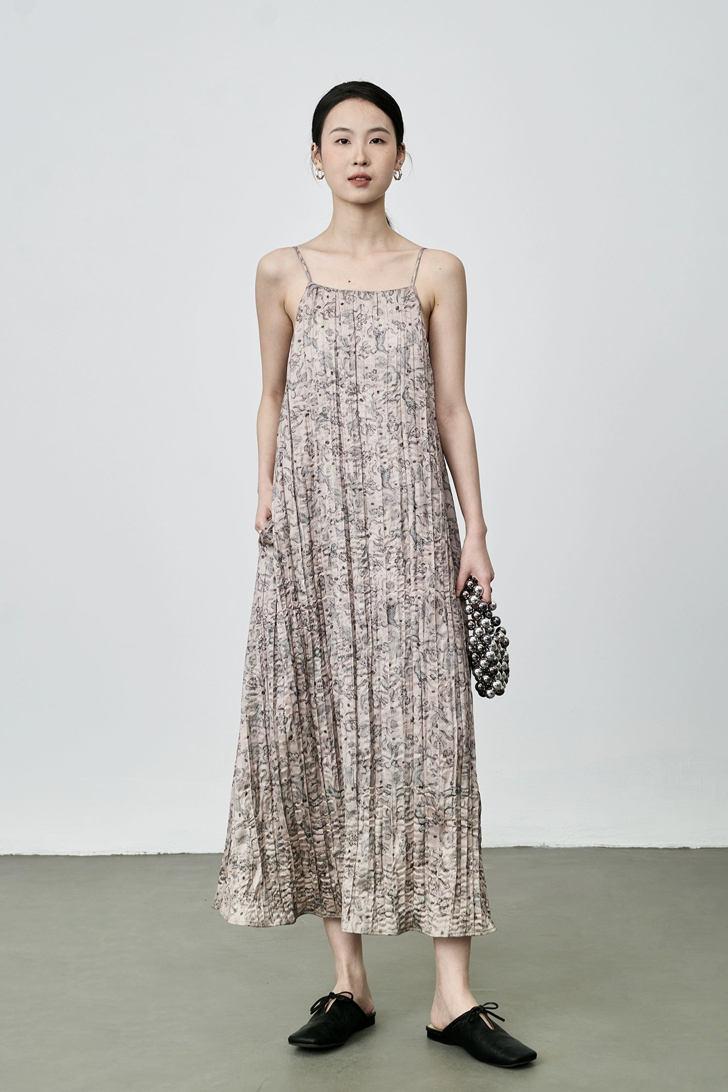 CAREMIND Nouvelle jupe à bretelles à imprimé végétal chinois Féminité Robe moulante à fleurs pour les vacances