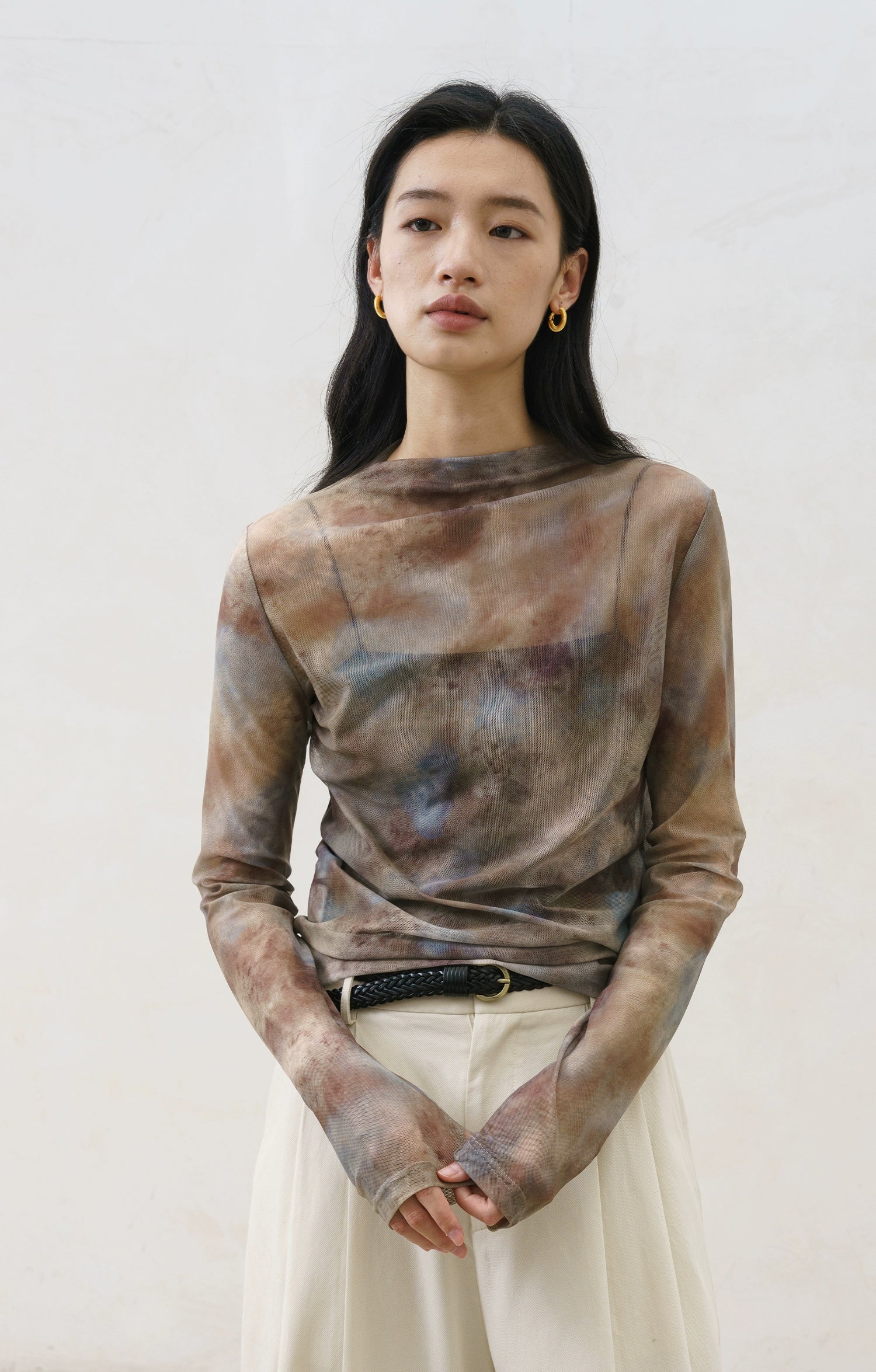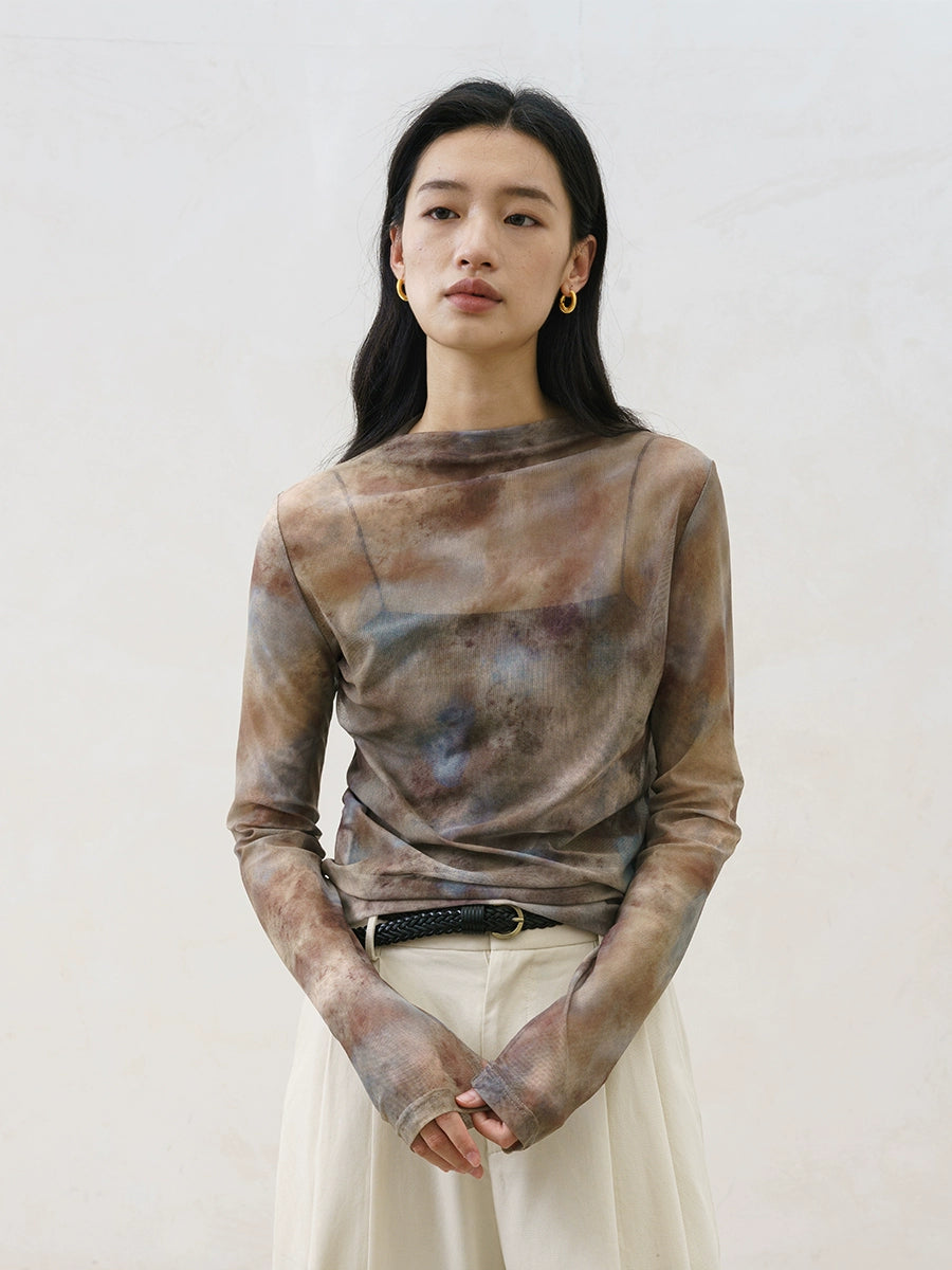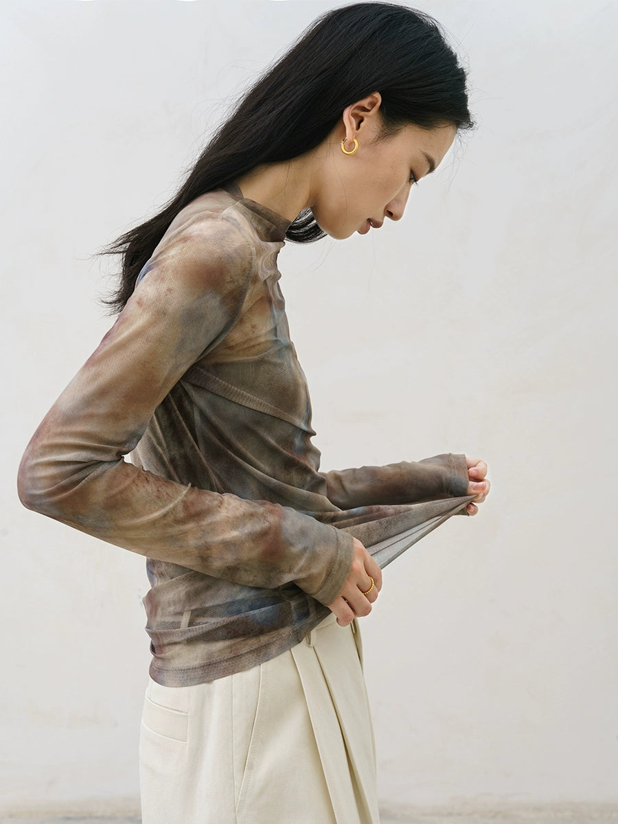 CAREMIND original léger et léger couleur tache haut à manches longues femme design sens slim-fit tricot bas chemise automne nouveau