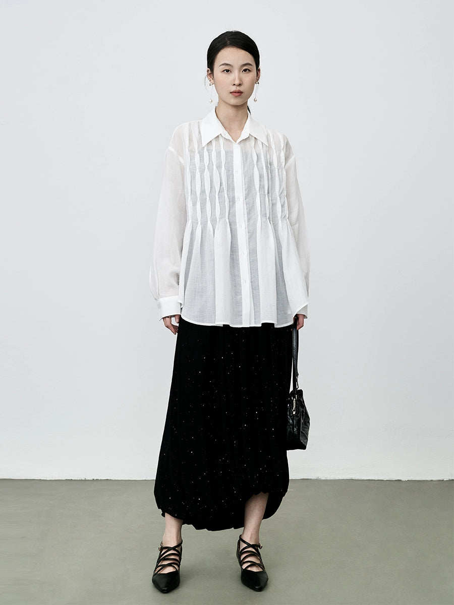Chemise plissée à taille haute en Tencel de qualité supérieure CAREMIND pour femme, blanche et légère