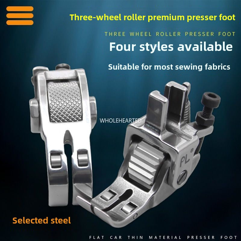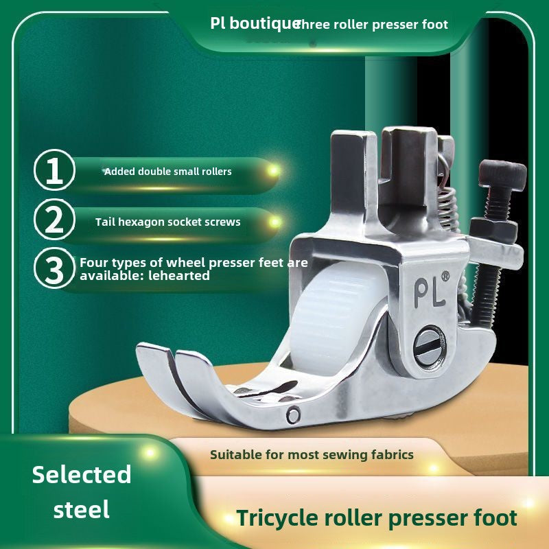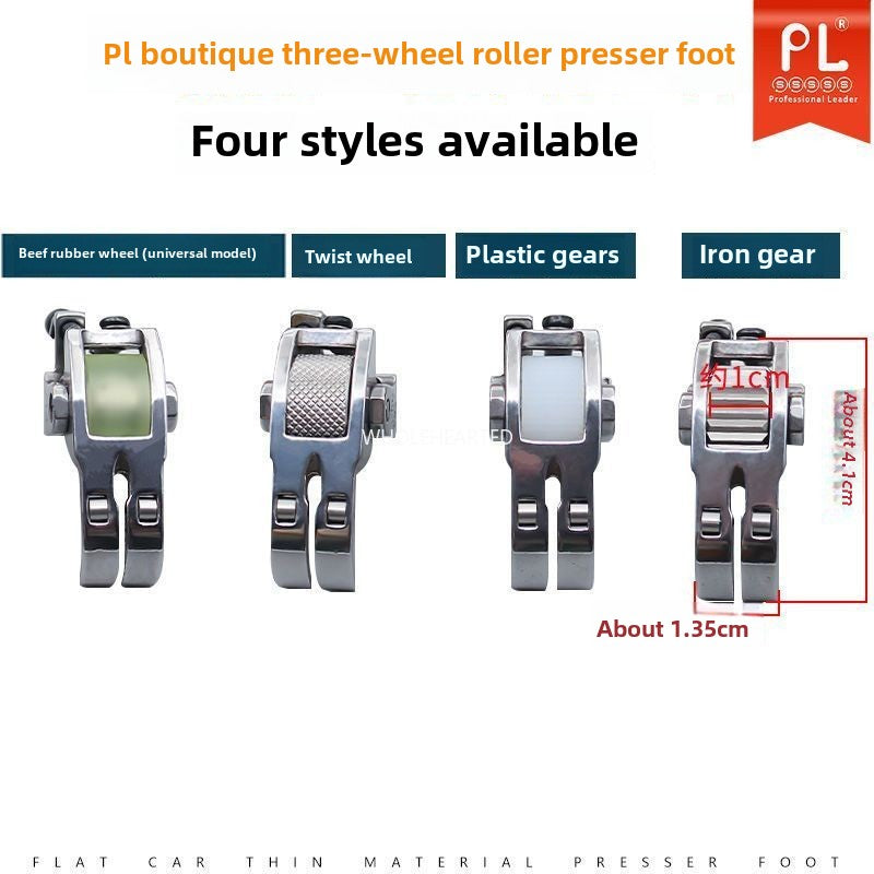 1047★ PL boutique flat car three-wheel roller presser foot, multi-functional thin and thick material adjustable roller presser foot leather down curtain
