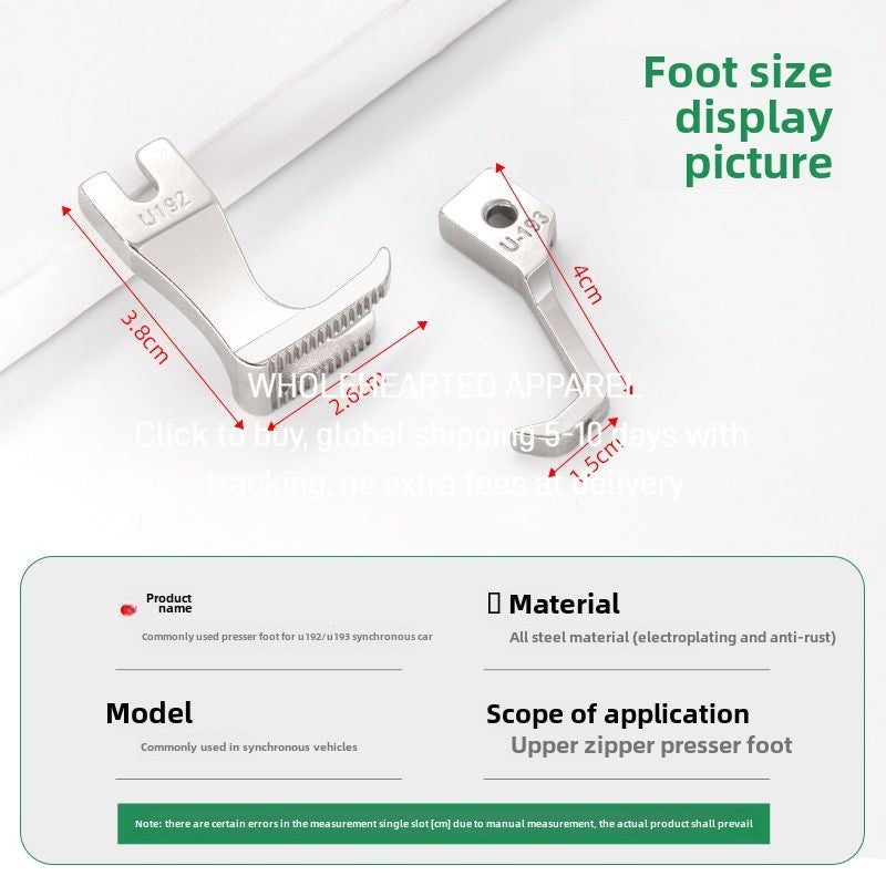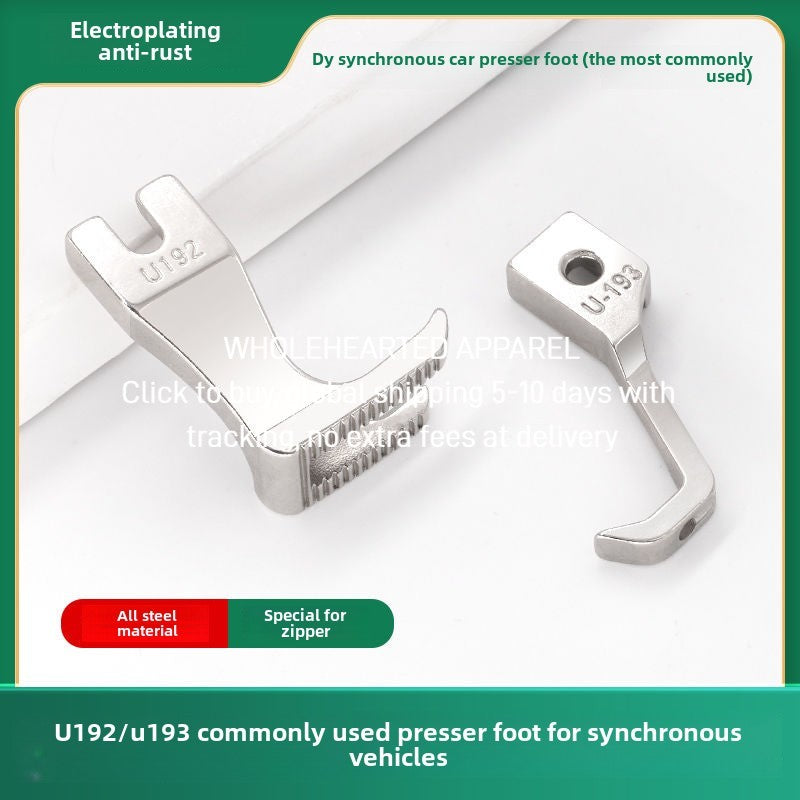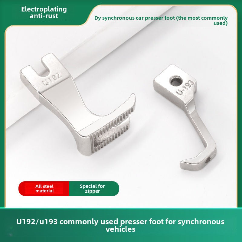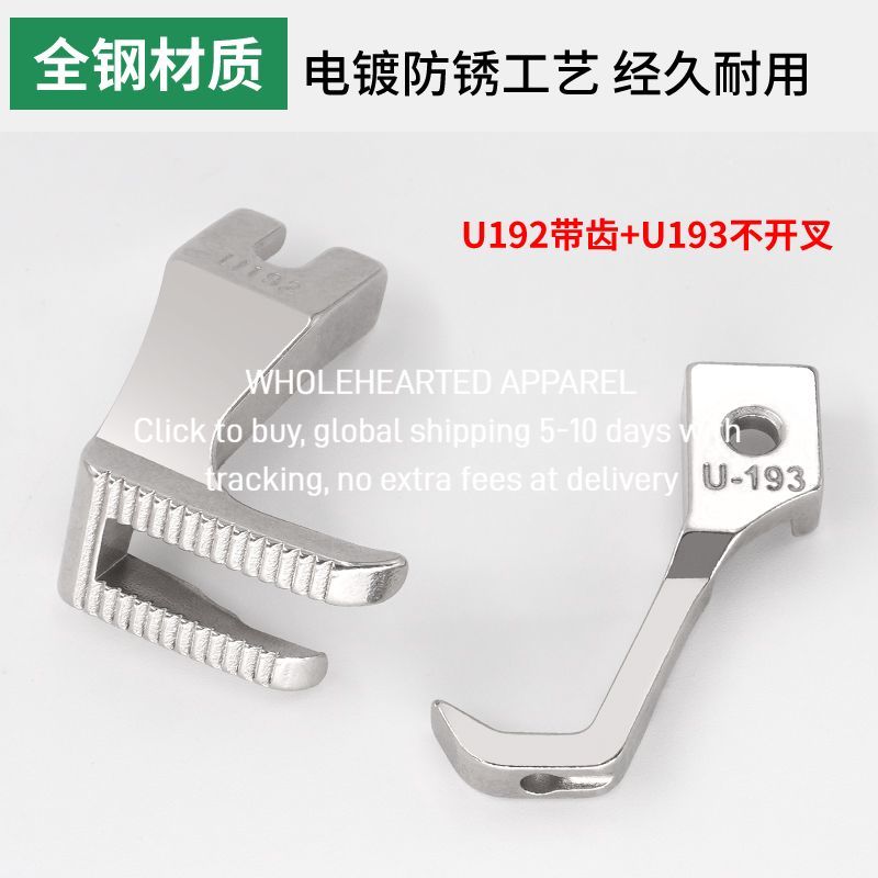 1057★ Synchronous car bilateral presser foot with teeth flat bottom rounded corners right angle split fork thick material leather presser foot U-192 U193