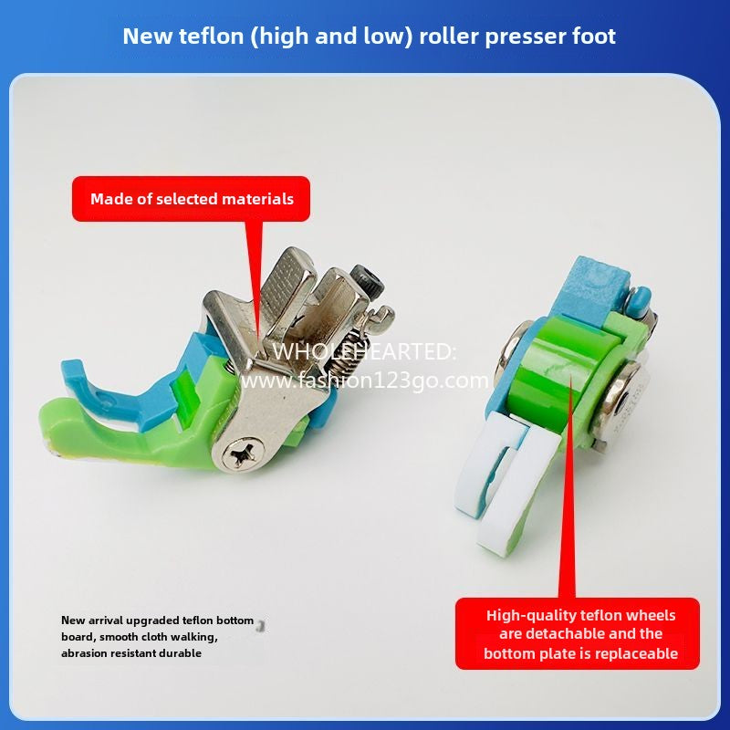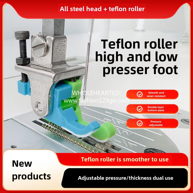1079★Teflon (high and low) roller presser foot, flat car thickness universal, no cloth, wear-resistant plastic high and low presser foot