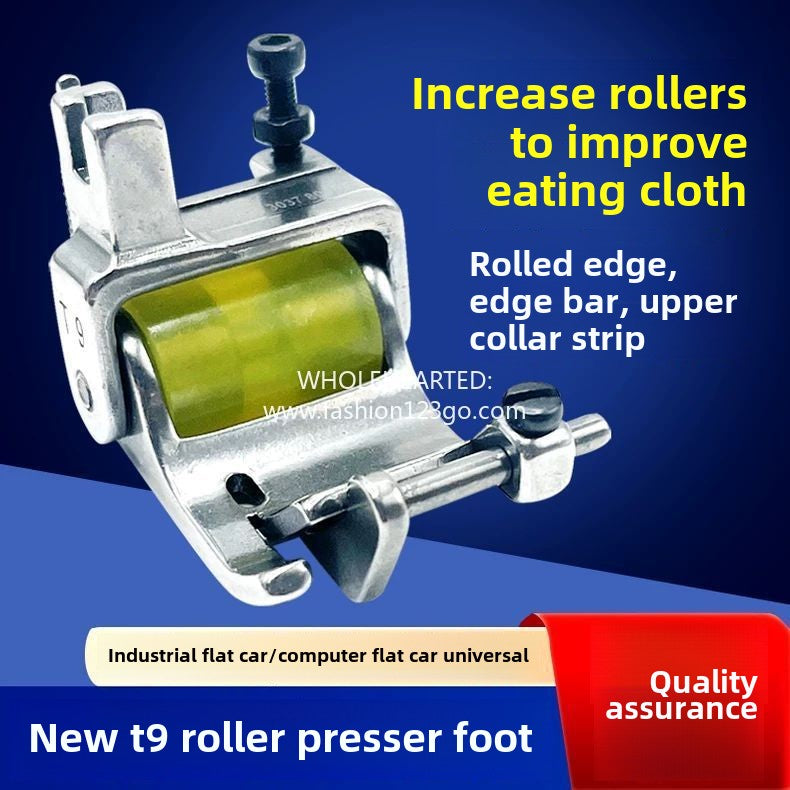 1095★ New T9 hemming roller presser foot width adjustable upper trousers collar shirt flat car does not twist wheel presser foot