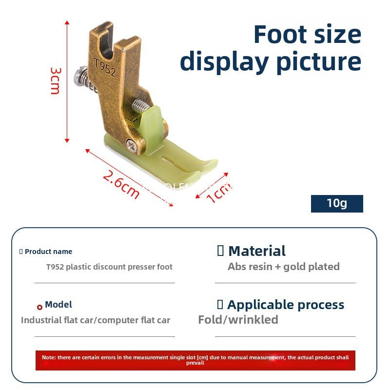 1149★ New Flat Car T952 Plastic Adjustable Wrinkle Presser Foot Sewing Machine Pumping Wrinkle Wrinkle Presser Foot Sewing Machine Accessories