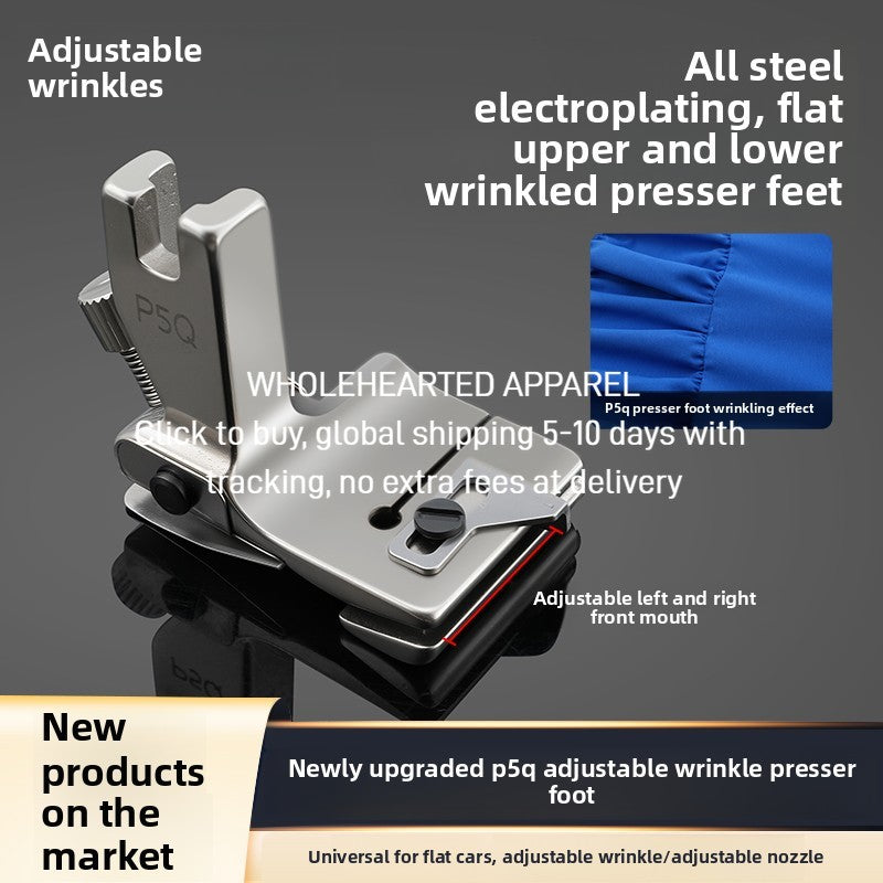 1607★ New P5Q adjustable wrinkle presser foot electroplating all-steel flat car universal wrinkle pumping wrinkle presser foot sewing accessories ****