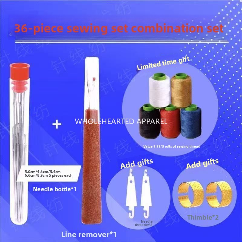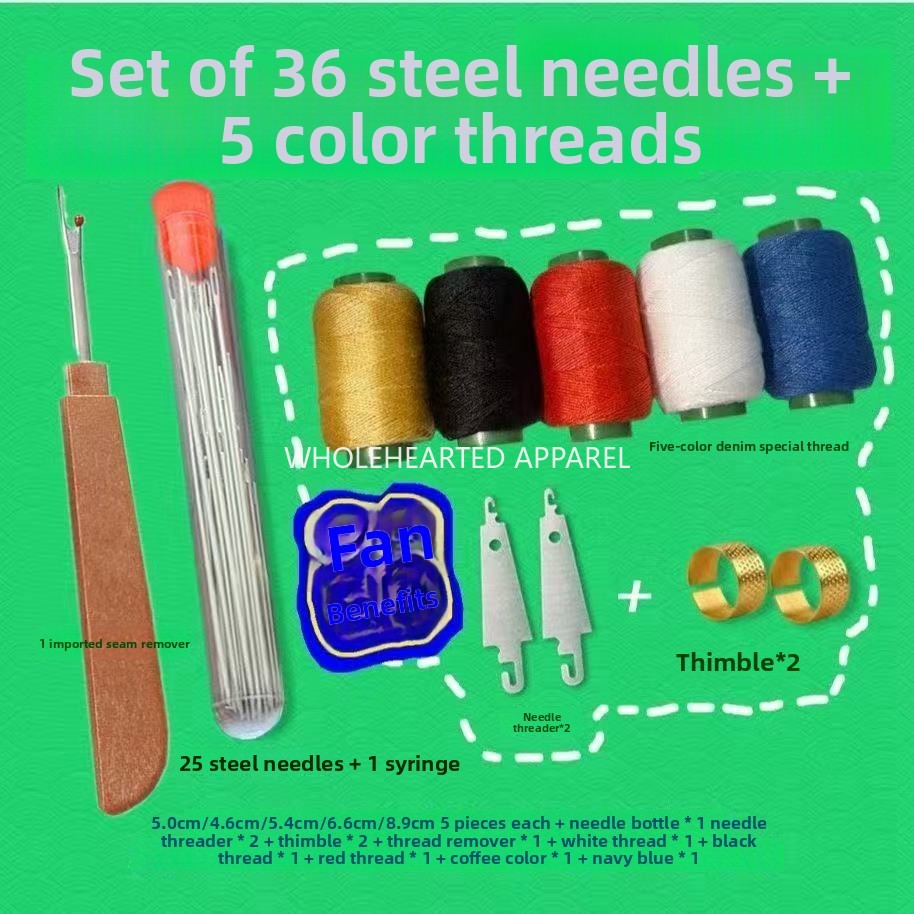 1651★ needle and thread 36-piece combination set, high-quality big-eye steel needle, thread remover 203 medium and thick five-color denim thread