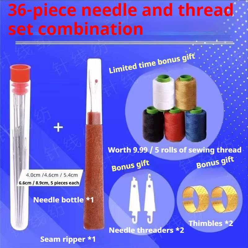 1651★ needle and thread 36-piece combination set, high-quality big-eye steel needle, thread remover 203 medium and thick five-color denim thread★